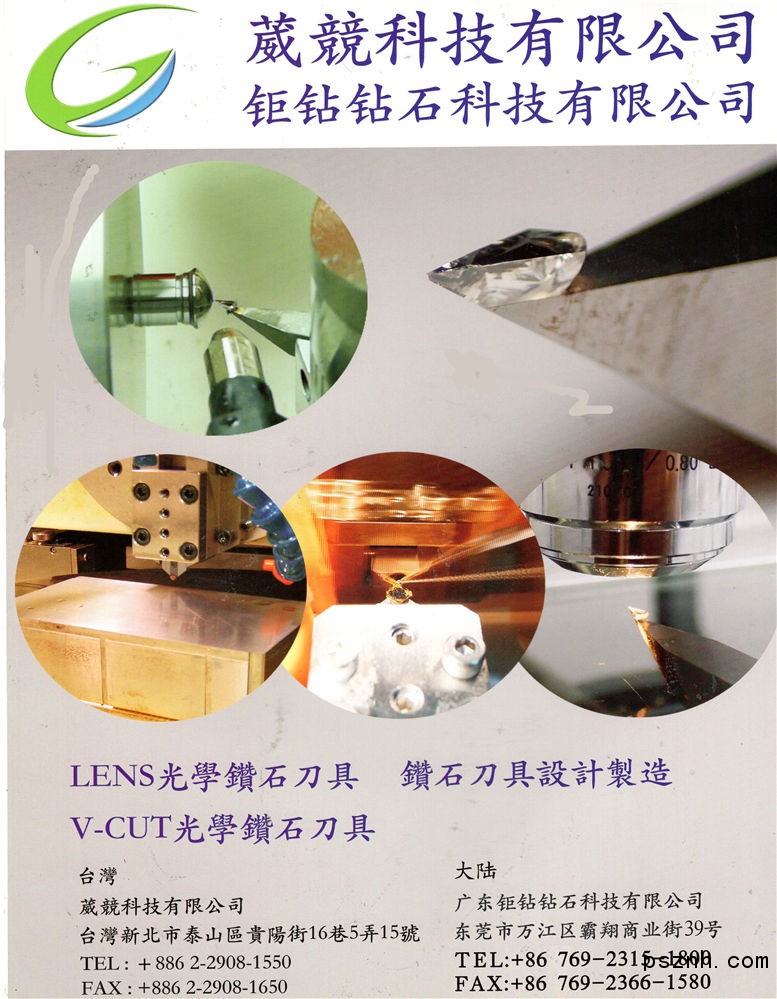 廣東鉅鉆鉆石科技有限公司.主要生產:LENS光學鉆石刀具、V-CUT光學鉆石刀具、及維修各種單晶刀具。