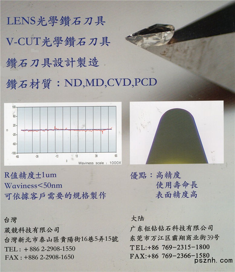廣東鉅鉆鉆石科技有限公司 LENS光學鉆石刀具、V-CUT光學鉆石刀具、及維修各種單晶刀具