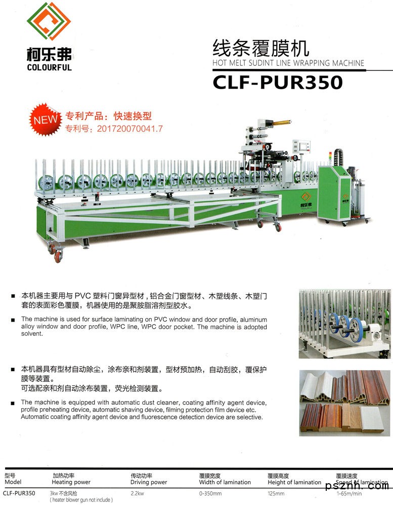 青島柯樂弗機械有限公司是集研發設計、生產制造、經營銷售和出口貿易于一體的多元化公司;公司主要致力于建材表面處理設備的研發與銷售;公司初創團隊都是在行業內從業多年、經驗豐富的中堅力量;本公司主要產品包括冷膠包覆機(型材覆膜機)、高速PUR熱膠包覆機(覆膜機)、PUR平貼機等貼面設備;線條轉印機、板材轉印機、封邊轉印機等轉印設備;可以處理實木,PVC,鋁合金,不銹鋼,木塑等各種材質的異型材,板材和片材,被廣泛應用于家具、門業、門窗、家電、汽車等行業。