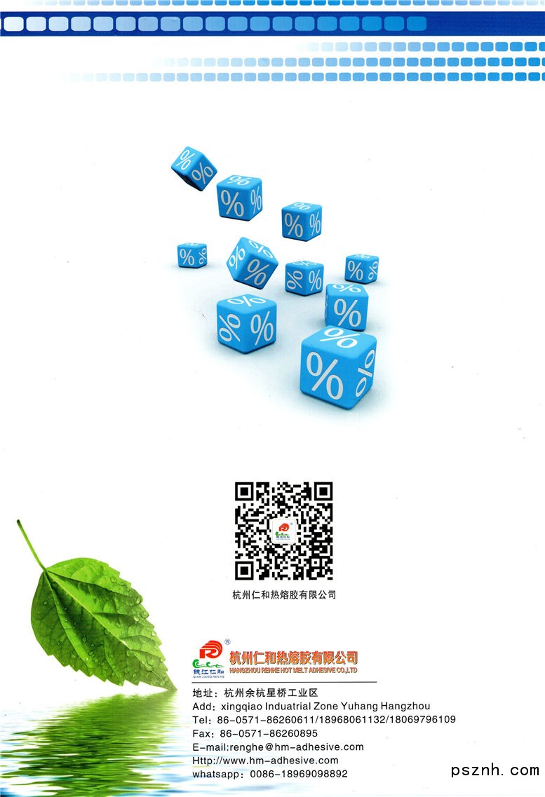 杭州仁和熱熔膠有限公司位于杭州市余杭區星橋街道工業園區   公司主要專業從事EVA、APAO、APP、SBS、SIS、TPU等系列產品的研究、開發、制造、銷售、技術服務和咨詢等工作。年生產各種熱熔膠的能力達10000噸以上。公司現有的碩士、學士等各類專業技術人員占職工總數的25%以上。產品使用遍及各類包裝、鞋材、木工、電子、化妝品、冰箱、書本裝訂等十多個領域,品種達130多種。產品形狀有顆粒、棒、片 、塊、條、膜狀。   公司堅持以優良的品質服務于顧客,并通過不斷完善測試分析設備、車間生產工藝和聘請專家顧問致力于新型熱熔膠的研究和開發。不斷推陳出新,以滿足市場發展需要。同時公司十分愿意根據用戶的需求、設計、開發各類特種熱熔膠產品,提供個性化的服務。經過多年的不懈努力仁和熱膠已贏得了越來越多國內外企業的接納和好評。“為用戶提供一流的產品”,一直是仁和公司不懈追求的目標,我們將以“更安全、更環保、更方便、更高效、更節約”的設計理念,努力把高質量的產品、高質量的服務一如既往的奉獻于廣大客戶。   在此本公司熱誠歡迎海內外的朋友來電、來函、來人洽談合作。