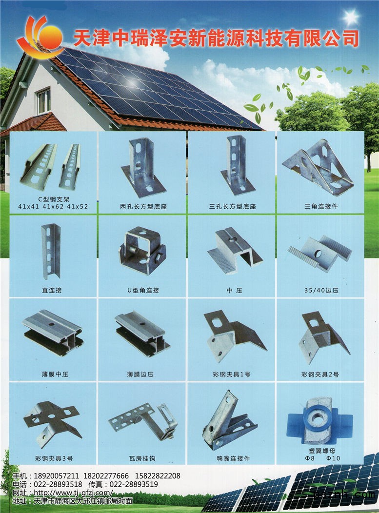 天津中瑞澤安新能源科技有限公司是槽鋼、導軌、外卷邊、太陽能光伏支架、底座等產品專業(yè)生產加工的公司,擁有完整、科學的質量管理體系。天津中瑞澤安新能源科技有限公司的誠信、實力和產品質量獲得業(yè)界的認可,并通過ISO9001質量體系認證,產品質量達到國際同類產品標準。