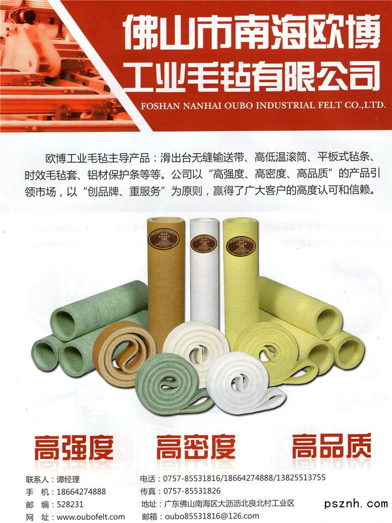 產(chǎn)品主要包括:滑出臺(tái)無(wú)縫輸送帶、高低溫滾筒、平板式氈條、時(shí)效毛氈套、鋁材保護(hù)條等等。公司以“高強(qiáng)度、高密度、高品質(zhì)”的產(chǎn)品引領(lǐng)市場(chǎng),以“創(chuàng)品牌、重服務(wù)”為原則,贏得了廣大客戶的高度認(rèn)可和信賴。