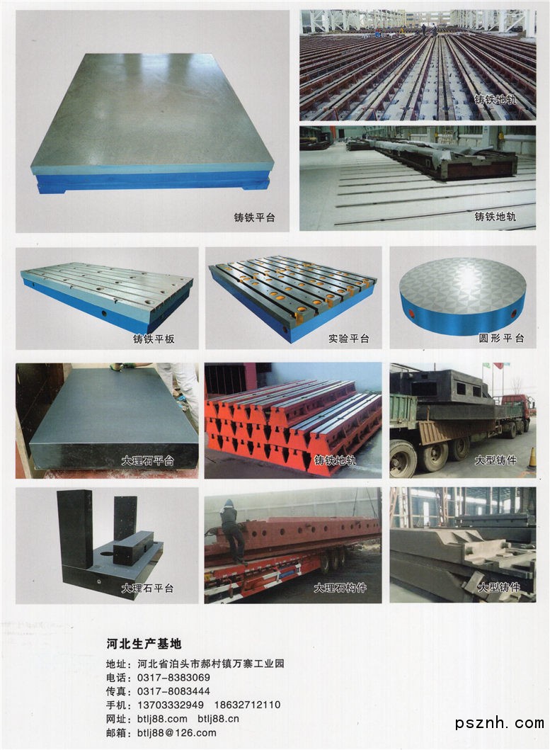 北京永興達利機電設備有限公司主導產品有:三維柔性焊接平臺、三維柔性焊接工裝、機床鑄件、鑄鐵平板平臺、平直量具、花崗石平臺、墊鐵、斜鐵、V型架(鐵)、方箱方筒、彎板、冷床矯直板、裙板、輥道支架、燒結臺車、臺車配件、大型鋼錠模等產品。 公司生產平直量具,具有設計合理、結構穩定、精度高、耐磨損、使用壽命長等特點。廣泛適用于機械加工、工具車間裝配車間、機(檢)修車間、計量室及精密加工的檢驗、檢測和研磨。 平直量具材料均采用HT200-250高強度鑄鐵。平板(臺)硬度為HB160-210。平尺及其它產品為HB170-240。我公司還有專業維修隊伍,常年在外為用戶修理平直量具和機床等。 北京永興達利機電設備有限是生產三維柔性焊接平臺,三維柔性焊接工裝,大型龍門銑床、龍門刨床、多功能端面銑床、落地式端面銑床、立臥式鏜銑床、機械滑臺、機床床身、銑床工作臺,各種檢驗劃線平臺(平板),燒結臺車,大型鋼錠模等,型號規格齊全,也可以根據用戶要求制作。我公司處在鑄造之鄉,彩用新工藝、新技術、科學管理,鑄造技術先進,完全采用泡沫實型,樹脂砂鑄造,材質HT250、300,鑄件人工回火時效或電震動時效,雙頻淬火機床。 |