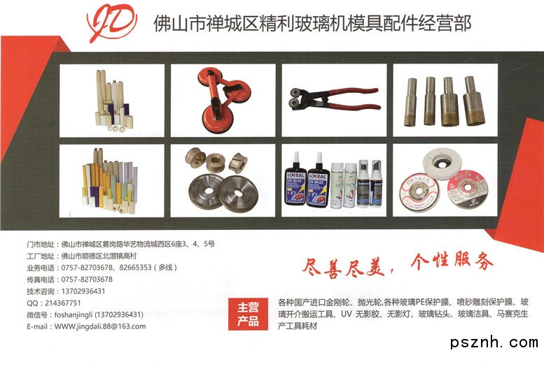 佛山市禪城區博大玻璃機械配件供應站是國內首家大型的進口、國產玻璃磨輪、玻璃工具產品的供應商,商品的產地包括有意大利、英國、西德、日本、韓國、臺灣和國內等品牌廠家,品種繁多,規格齊全,能滿足玻璃行業制造、加工廠商和消費者的不同需求。 公司自一九九六年開業以來,不斷開拓新市場,除經銷國外不同牌子的磨輪、機械和工具外,還與各廠家建立聯營網絡,按客戶的來樣訂造特殊規格的磨輪、機械和工具,并提供省內送貨上門,省外還透過不同的途徑送到客戶手中的服務。長年為客戶的磨輪、機械和工具使用提供咨詢服務,本著"用戶至上,物美價廉"的宗旨,竭誠為廣大用戶服務,愿與各企業廠家攜手共進,互惠互利。