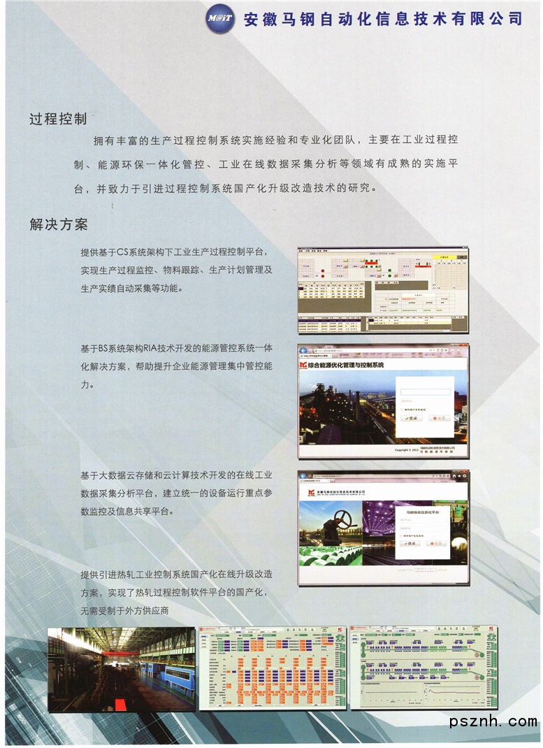 金戈鐵馬聞征鼓,只爭朝夕啟新程。馬鋼AIT以實現國內一流自動化公司為目標,本著“以先進的技術,不斷滿足顧客需求”的質量方針,致力于為冶金行業和社會廣大用戶提供從基礎自動化、過程自動化到生產制造執行系統(MES)、企業資源計劃(ERP)全面解決的技術方案。我們真誠、熱切期望與國內外同行合作前行,共創民族自動化產業的美好未來。