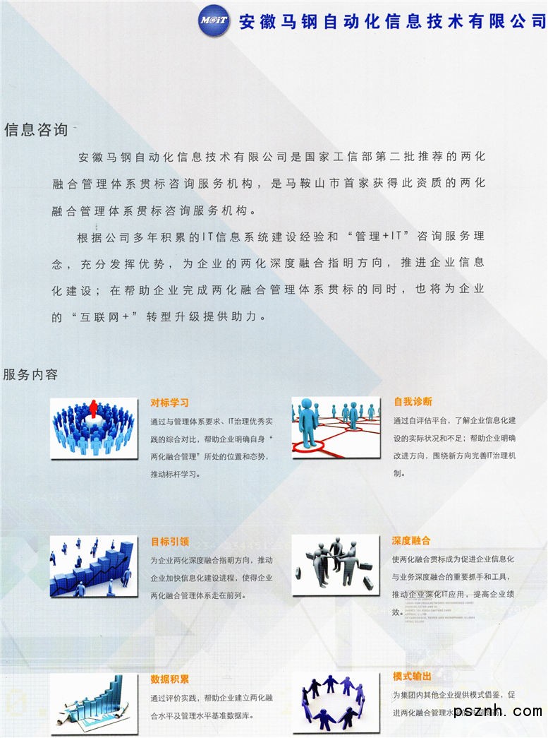 安徽馬鋼自動化信息技術有限公司(簡稱馬鋼AIT)是一家具有雄厚技術力量和豐富施工經驗的高新技術企業。注冊資本1.1億元。現有員工976人,其中高級工程師74人,工程師181人。公司主要業務范圍為冶金自動化系統工程的設計安裝成套調試、計算機網絡工程及應用軟件開發、企業信息化建設、網絡通訊工程等。