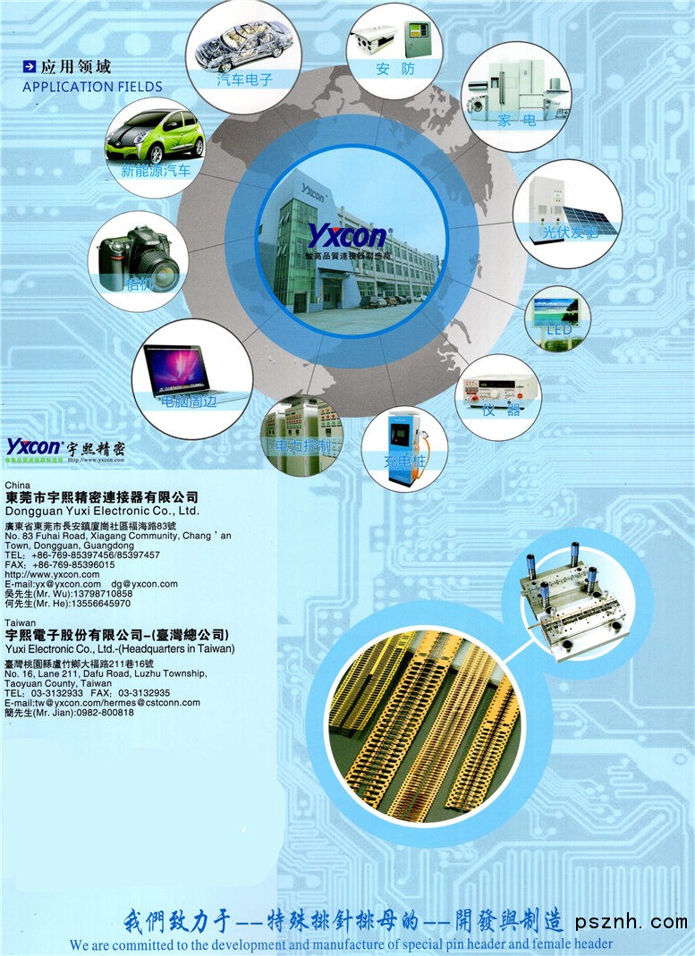產品主要為知名企業配套,產品廣泛地應用于:儀器儀表,電力控制,POS機,充電樁,電子通訊,LED顯示屏,程控交換機,數碼相機,戶外顯示屏,各種移動存儲盤,等電子設備,為客戶提供最精密可靠的連接。