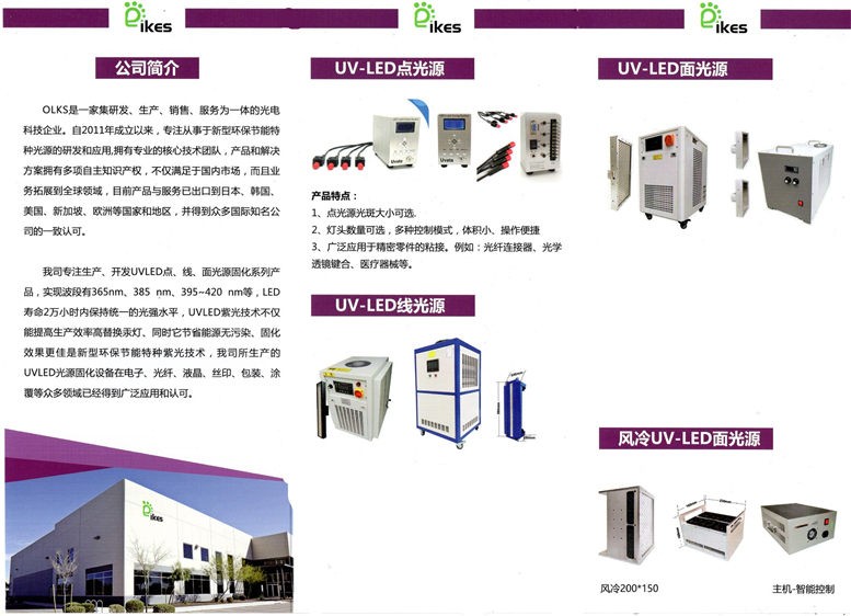 深圳市歐萊克斯光電科技有限公司是一家集研發、生產、銷售、服務為一體的光電科技企業。自2010年成立以來,秉持“誠信、專注、創新”的經營理念,專業從事于新型環保節能特種光源的研發和應用。經過不懈的努力,現以LED紫外線光固化,脈沖紫外線光固化,UV-LED噴墨打印,太陽光模擬器,生物、醫學、警用檢測分析光源,植物生長燈,科研多波段光源,紫外殺菌,LED光子醫療,脈沖紫外線水處理、蔬菜處理、空氣處理等為主要產品線。在軍事、科研、生物、刑偵、光電、美容、醫療、水處理、蔬菜處理等眾多領域已取得了廣泛的應用。公司產品和解決方案擁有多項自主知識產權,不僅滿足于國內市場,而且業務拓展到全球領域,目前產品與服務已出口到日本、韓國、美國、新加坡、歐洲等國家和地區,并得到眾多國際知名公司的一致認可。