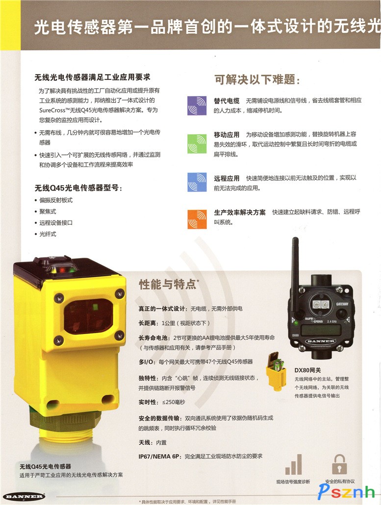 擁有四十多年的產(chǎn)品研發(fā)和市場開拓經(jīng)驗的美國邦納公司是專業(yè)的傳感、檢測和自動化技術(shù)方案提供者。邦納擁有同行業(yè)中最為強大的研發(fā)能力,位于美國的研究開發(fā)中心不斷更新邦納產(chǎn)品,在邦納,從事研究開發(fā)的員工占員工總數(shù)的20%。豐富的產(chǎn)品選擇、迅速的交貨期及強大的技術(shù)支持確保了邦納行業(yè)領(lǐng)先者的地位。