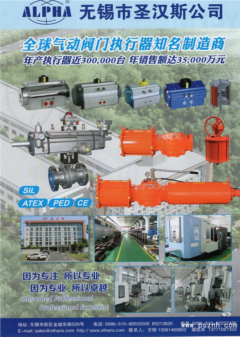 經過二十年艱苦奮斗,創新發展,圣漢斯取得了今天的成就,成為了最專業,規模最大的執行器生產廠家之一。 公司現有多種系列執行器,阿爾法A系列不銹鋼執行器,阿爾法B系列鋁合金執行器,阿爾法C系列鋁合金執行器,HPY系列撥叉執行器,四活塞氣動執行器,離合式手輪機構,閥位反饋裝置,過濾減壓閥等閥門控制附件。現有φ32~φ1000近20多個規格,扭矩覆蓋5Nm~300,000Nm。 公司于2010年初喬遷進入江南第一古鎮梅村工業園區,新工廠投資5000萬人民幣。公司現有員工220人,工廠占地面積3萬平方米,年產近30萬臺執行器,銷售近3億人民幣。 公司本著“專注,專業;專業,卓越”的核心理念,竭誠為新老客戶提供專注的服務,更專業的技術,更卓越的產品。 圣漢斯人知道,只有好的管理、好的理念、好的人才還是不夠的,還要有精良的設備才代表企業擁有強大的生產能力,并確保產品的卓越品質。