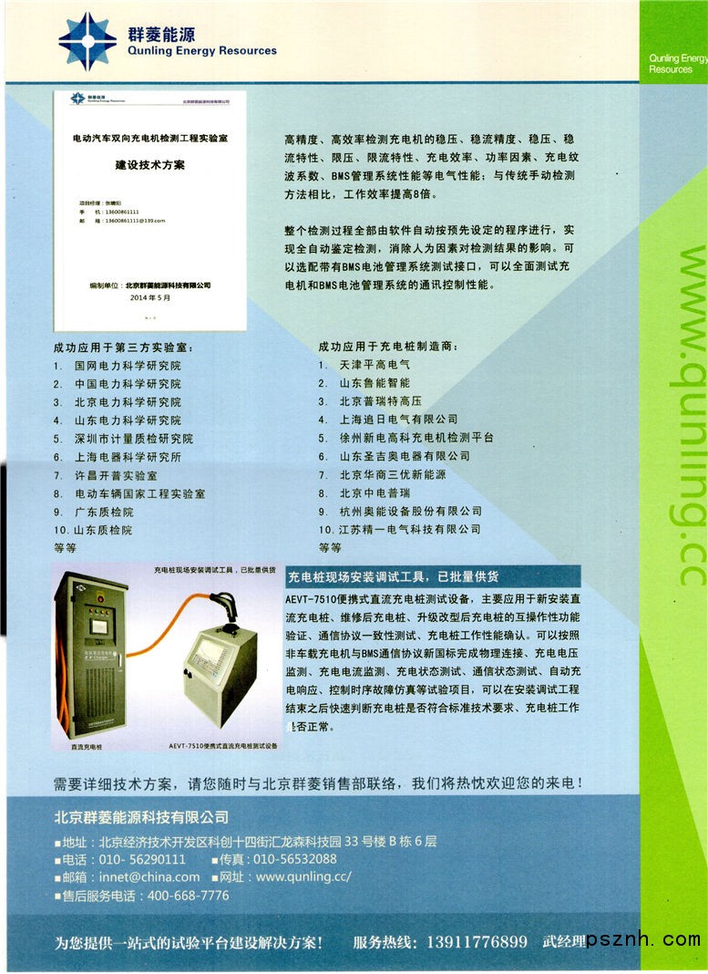 北京群菱能源科技有限公司,專業致力于電動汽車充電站檢測及系統集成、新能源檢測及系統集成、電源測試設備研發與制造的高科技生產型企業,公司注冊資金10888萬。北京群菱現有35項發明專利及7項軟件著作權,通過“高新技術企業”認證。公司參與充電樁檢測、光伏并網檢測等23項相關標準的起草,是中國充電樁檢測標準制定的重要參與單位。