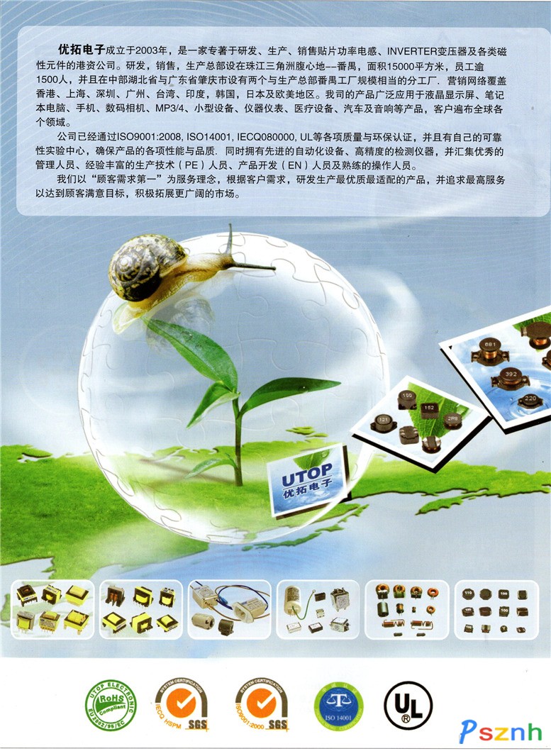 優拓電子(廣州)有限公司成立于2003年,是一家專著于研發、生產、銷售貼片功率電感、INVERTER變壓器及各類磁性元件的港資公司。研發,銷售,生產總部設在珠江三角洲腹心地--番禺,面積15000平方米,員工逾1500人,并且在中部湖北省設有與生產總部番禺工廠規模相當的分工廠.營銷網絡覆蓋香港、上海、深圳、廣州、臺灣、印度,韓國,日本及歐美地區。我司的產品廣泛應用于液晶顯示屏、筆記本電腦、手機、數碼相機、MP3/4、小型設備、儀器儀表、醫療設備、汽車及音響等產品,客戶遍布全球各個領域。