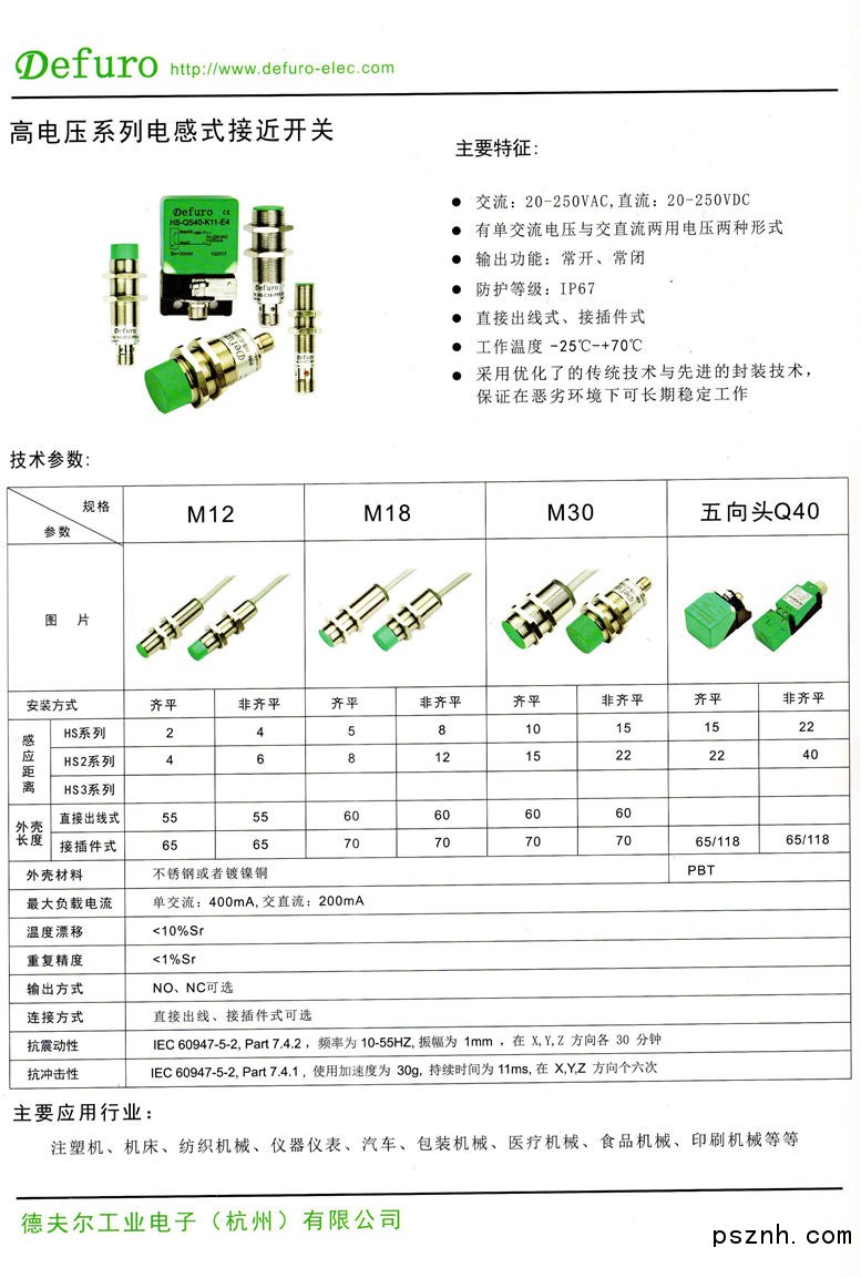 目前公司擁有自主研發(fā)的產(chǎn)品系列如下:電感式接近傳感器,電容式接近傳感器,光電傳感器,光幕型傳感器,超聲波傳感器,傳感器專用連接線、連接器以及其它控制器等幾千種產(chǎn)品。所有產(chǎn)品全部采用國(guó)際先進(jìn)的高端生產(chǎn)工藝,嚴(yán)格參照ISO、UL、ROHS等國(guó)際行業(yè)標(biāo)準(zhǔn)研發(fā)生產(chǎn),產(chǎn)品已通過(guò)RoHS、LVD、EMC、CE權(quán)威檢測(cè)認(rèn)證,擁有自主知識(shí)產(chǎn)權(quán), 并榮獲多項(xiàng)新型專利。