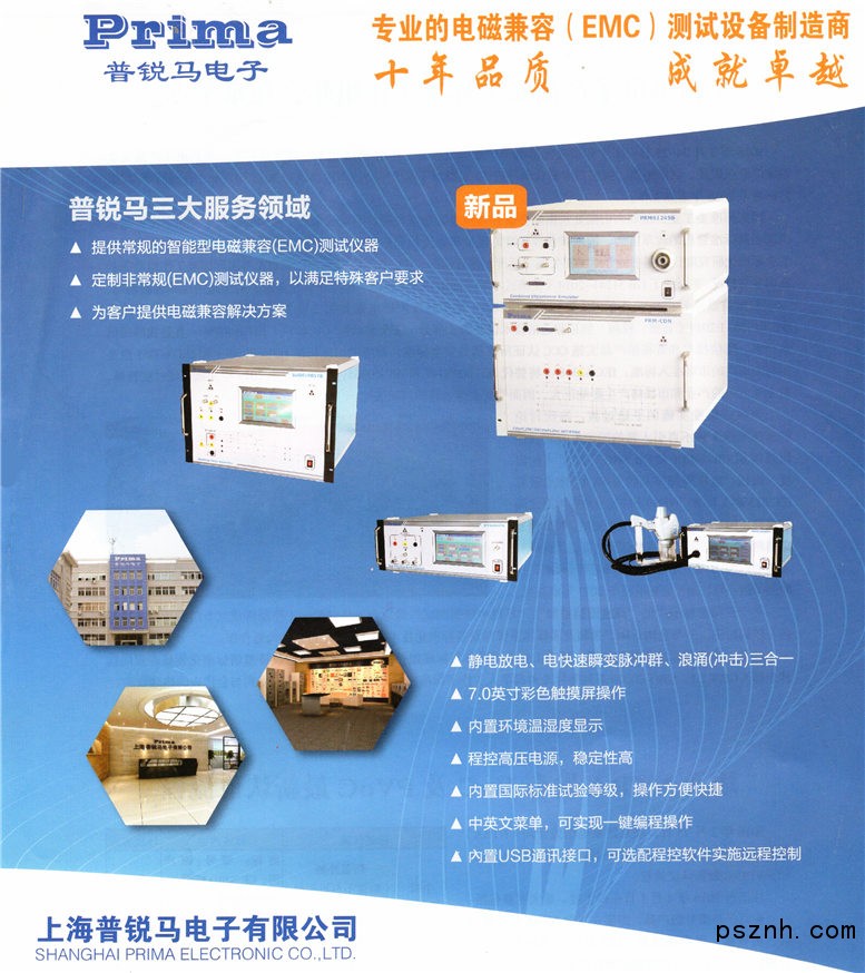 nic CO., Ltd.)坐落于上海市最主要的高新技術(shù)開發(fā)區(qū)之一的久富經(jīng)濟開發(fā)區(qū),是上海市科委認定的高新技術(shù)企業(yè)。是一家集研發(fā)、生產(chǎn)、銷售和服務于一體的,專業(yè)提供液晶智能化電磁兼容測試儀器的高科技公司。公司已通過德國萊茵TUV ISO9001:2008國際標準質(zhì)量管理體系認證,產(chǎn)品已通過華東計量院、北京計量院、廣州賽寶計量院等國內(nèi)權(quán)威機構(gòu)認證。所有的產(chǎn)品在研發(fā)、生產(chǎn)、調(diào)試、檢驗和試驗等每一個生產(chǎn)環(huán)節(jié)都嚴格貫徹ISO9001:2008質(zhì)量體系指令。公司將一如既往潛心打造自身品牌,不斷提高企業(yè)管理運作水平,積極配合客戶所需,繼續(xù)領(lǐng)行業(yè)之新,標行業(yè)之異。