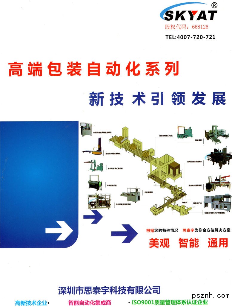 深圳市思泰宇科技有限公司(www.skyat.com.cn),主要從事高端包裝設備、檢測設備、汽車智能組裝線、自動化設備、激光加工設備、安防及交通設備的研發、生產、銷售。陸續通過深圳市高新技術企業、國家高新技術企業、ISO9001質量管理體系認證。