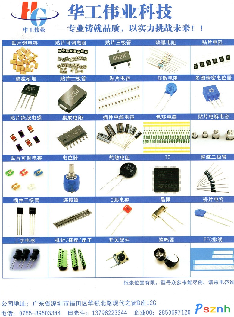 深圳市華工偉業科技有限公司是經銷多家著名品牌的電子元器件產品代理商,也是從事通信、數碼、信息、測試測量儀表等領域技術研究和方案開發的綜合型企業,公司按代理產品線經營下設多個事業部。