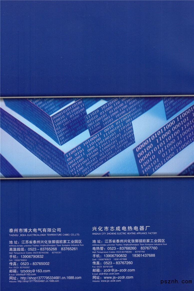 泰州市博大電氣有限公司位于江蘇省泰州興化市張郭鎮,地理條件優越,水陸交通十分便利。 公司專業生產:熱電偶、電熱管、高溫線、工業電爐、溫控儀表、仿進口熱電偶(阻)、補償導線 。公司是工業自動化儀器儀表、電熱電器的研發、生產、銷售集一體的生產企業。公司工藝水平精 湛、技術力量雄厚、檢測設備完善,擁有一批多年生產的專業技術骨干,并以科學的制度和科學的 管理確保產品品質和公司信譽。 科學管理、誠信至上。為客戶提供質量可靠的產品,全心全意為客戶服務是我們企業一貫追求 ,我們將以一流的產品、一流的服務與您真誠合作! 本公司竭誠與新老客戶朋友誠信合作,共創輝煌。興化市志成電熱電器廠