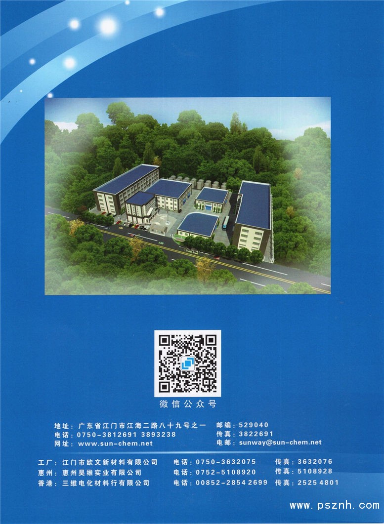 為適應業務的發展,成立了以下全資公司: 一、惠州大亞灣昊維實業有限公司,負責珠三角東部地區業務,經營公司全系列產品; 二、福建昊化無機鹽有限公司,生產過硫酸鈉/銨、硫酸銅/鎳、氨基磺酸鎳、高純硫酸亞鐵等無機鹽; 三、江門歐文新材料有限公司(外商獨資企業)生產:試劑硫酸、鹽酸、氨水,水溶性預焊劑系列產品,剝錫液、助焊劑、蝕刻劑等電路板化學品。 四、三維電化材料行有限公司 設在香港的窗口公司。