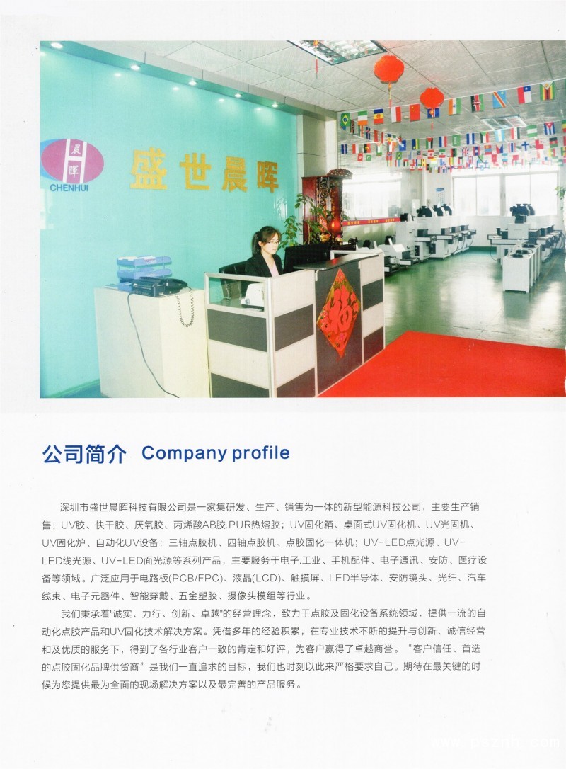 深圳市盛世晨暉科技有限公司是一家集研發、生產、銷售為一體的新型能源科技公司,主要生產銷售:便攜式UV紫外線燈、UV燈箱、桌面式UV光固機、、全自動UV固化機、LED點、線、面光源固化設備點膠機、點膠固化一體機、噴膠固化機、CCD視覺點膠機等自動化設備,主要服務于工業領域內設備及配件。廣泛應用于電路板(PCB\/FPC)、液晶(LCD)、各種數據線、鋰電池、3C、手機周邊配件、模組攝像頭、觸摸屏、半導體、電子元器件等多種行業。