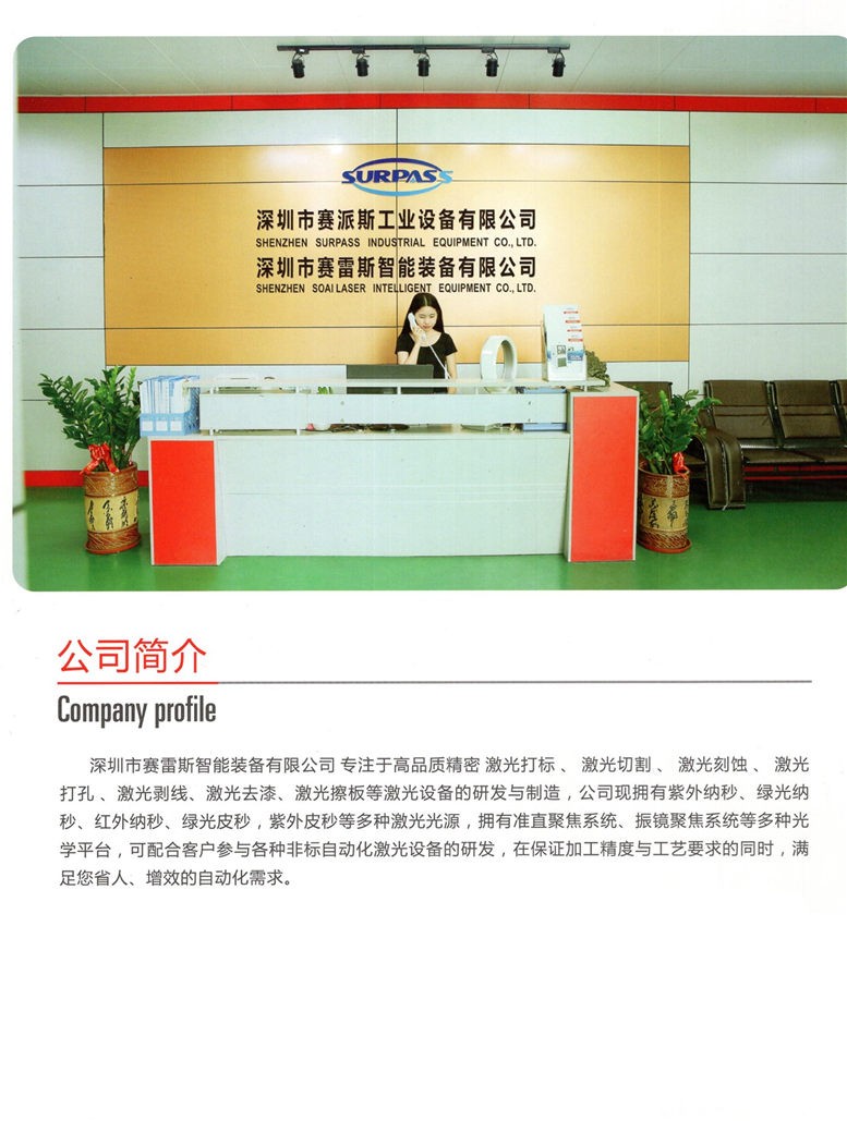 深圳市賽雷斯智能裝備有限公司專注于高品質精密 激光打標、激光切割、激光刻蝕、激光打孔及激光調阻等激光設備的研發與制造,公司現擁有紫外納秒、綠光納秒、紅外納秒、綠光皮秒,紫外皮秒等多種激光光源,擁有準直聚焦系統、振鏡聚焦系統等多種光學平臺,可配合客戶參與各種非標自動化激光設備的研發。