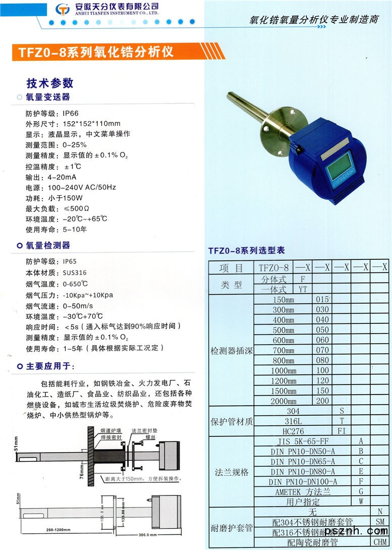 安徽天分儀表有限公司以優(yōu)質(zhì)的產(chǎn)品、專業(yè)的研發(fā)團(tuán)隊,科學(xué)嚴(yán)謹(jǐn)?shù)纳a(chǎn)技術(shù),為全國需要實(shí)時測量、把握燃燒過程中的煙氣含氧量的公司提供高品質(zhì)的服務(wù)和獨(dú)家定制規(guī)格的氧化鋯分析儀,產(chǎn)品涉足于石油化工、制藥、鋼鐵、研究所、煤礦、紡織等眾多行業(yè)領(lǐng)域。多年以來,憑借良好的口碑和過硬的產(chǎn)品質(zhì)量造福了幾百家企業(yè),為其提供氧化鋯分析儀,用于燃燒監(jiān)視和控制過程,并且成功幫助這些企業(yè)取得了比較可觀的節(jié)能、降低環(huán)境污染效益。