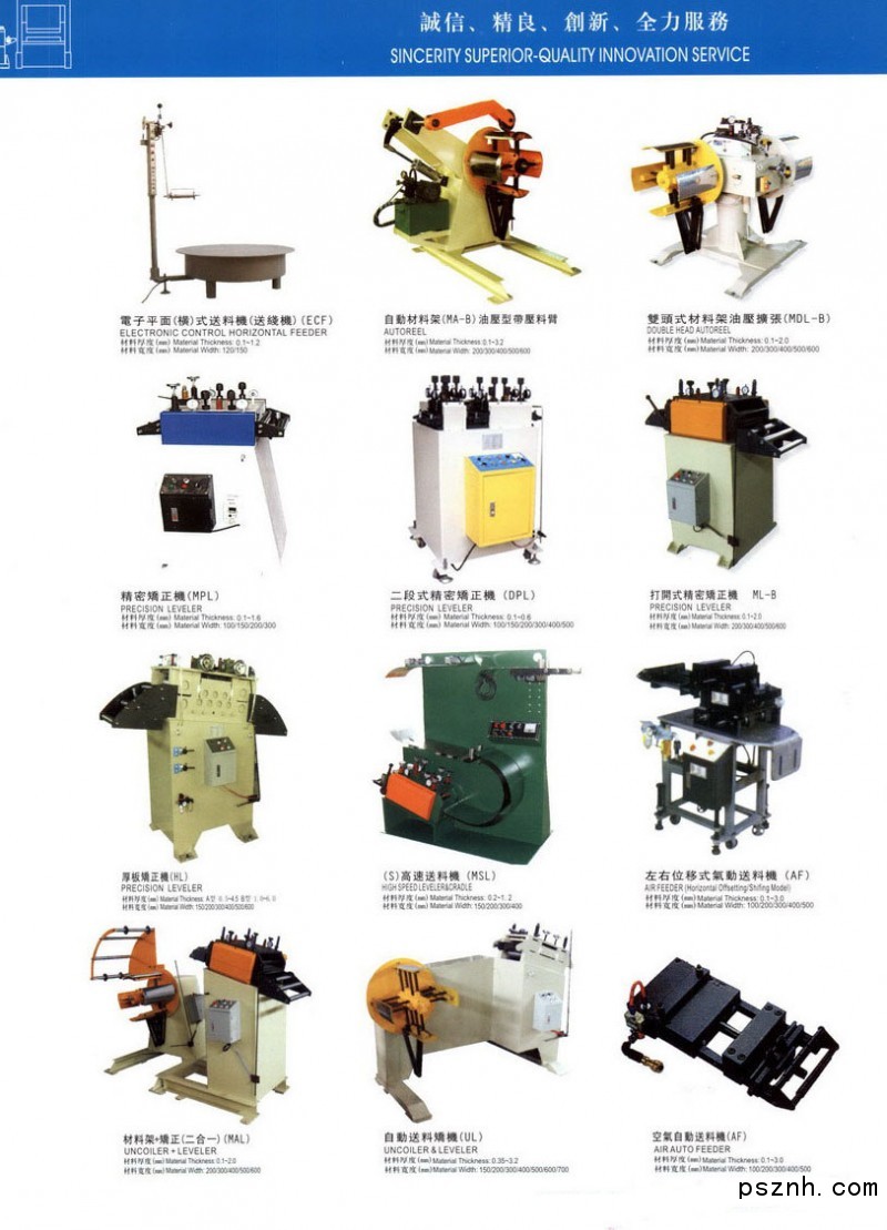 公司自成立以來,緊跟國際沖壓自動化行業(yè)發(fā)展趨勢,引進德國、意大利、美國、日本等同行業(yè)的國際先進設(shè)計理念,自主研發(fā)并生產(chǎn)銷售一系列沖壓自動化行業(yè)內(nèi)領(lǐng)先產(chǎn)品:NC精密整平送料機(三合一)系列、NC數(shù)控左右偏擺送料機系列、雙伺服高速送料機系列、及各類沖壓自動化機械手產(chǎn)品系列,并獲得多項中國專利。產(chǎn)品遠銷歐洲、美洲、日本即東南亞。