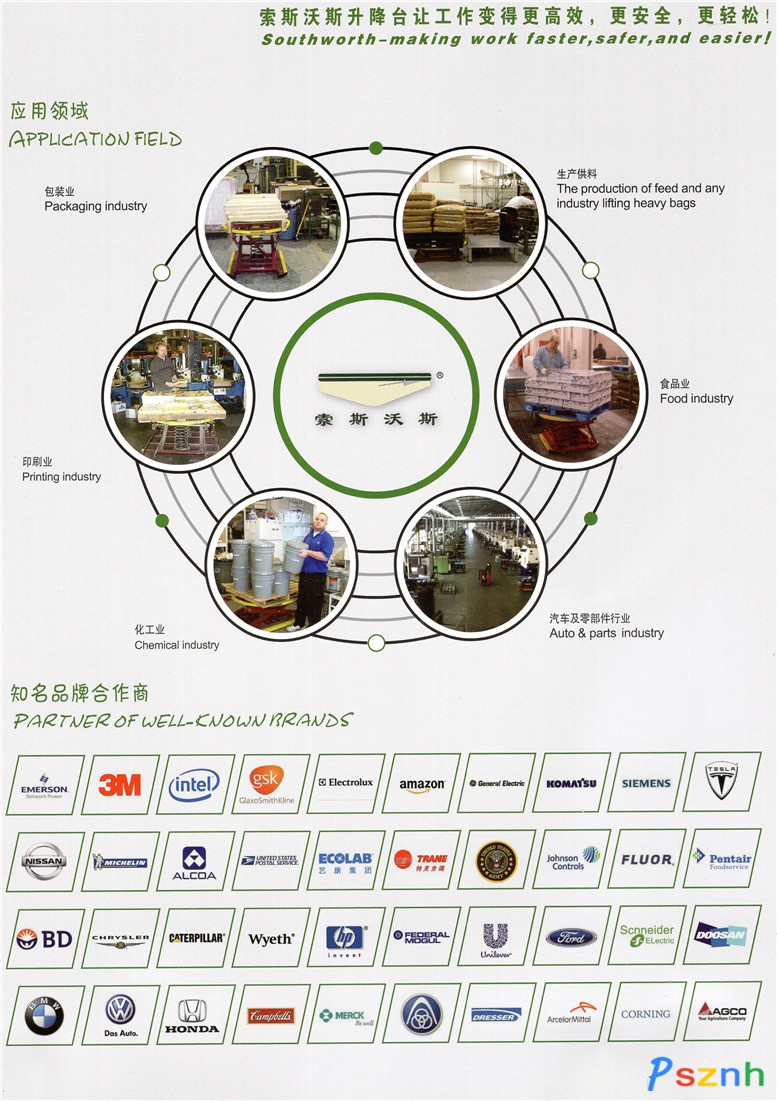 早在上世紀80年代,索斯沃斯就進入中國市場,一直是中國升降臺行業的開創者。20多年來公司對中國用戶的承諾始終如一,那就是要為他們提供有創新、高品質的可靠產品。如今,索斯沃斯的產品已經廣泛地應用在汽車及零部件行業、木材加工行業、制造行業各類裝配生產線、包裝行業及物流倉儲行業等等。