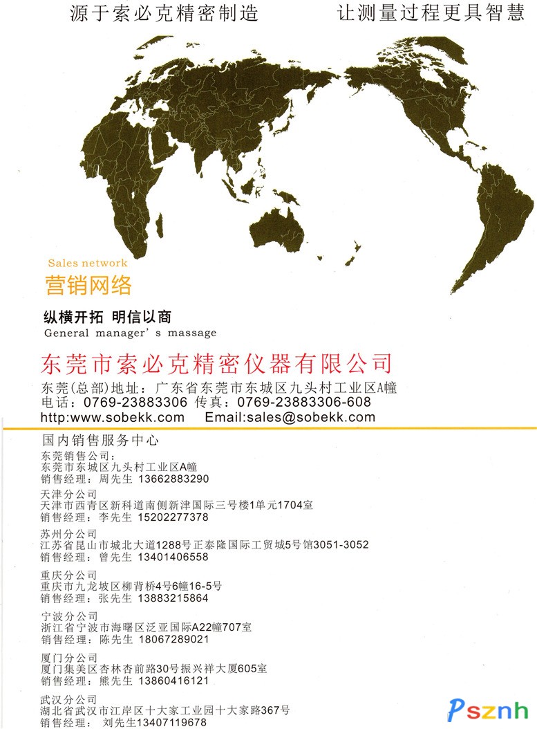 東莞市索必克精密儀器有限公司是一家具有15年從業經驗、具有開拓創新精神的儀器行業精英團隊組建的高科技股份制制造企業,自主研發、生產、銷售、各類工業用高精度光學測量儀器。在臺灣設立一個研發中心,在大陸擁有六大營銷售后服務中心和一個海外事業部。致力于為精密制造客戶提供工業自動化與智能化的產品與解決方案,主要針對產品尺寸測量,表面缺陷檢測,自支化生產裝配等各環節,幫助客戶提升質量,改善效       索必克(Sobek)目前擁有精密影像測量儀器,影像測量自動化設備,影像檢測自動化設備和影像組裝自動化設備等四大產品系列。其中精密測量儀器設備與解決方案已成功運用到包括電子,五金、塑膠、模具、鐘表、陶瓷、PCB板、汽車零件等行業。索必克(Sobek)擁有全國性的服務網絡(廣東,江蘇,天津,上海,浙江,福建,成都,武漢,臺灣,泰國,韓國等國內國外銷售售后服務中心)高品質,高效率的服務團隊,為客戶提供零距離的服務,免費上門安裝調式與培訓,一年免費保修期,非盈利性的后續服務方案等一系列保障措施,保證客戶的高效使用及技術支持。