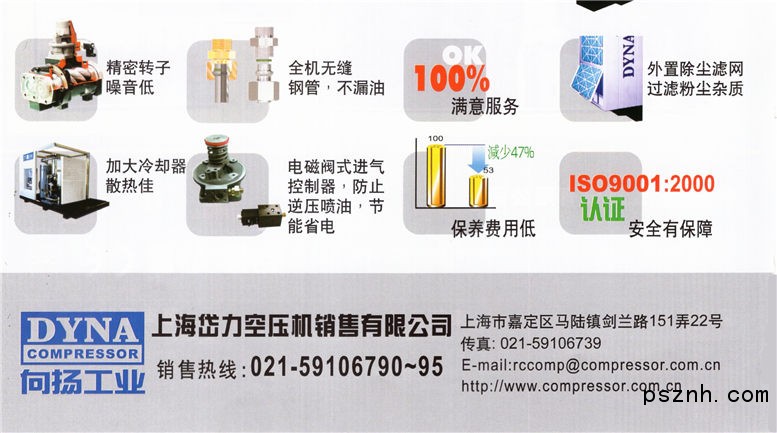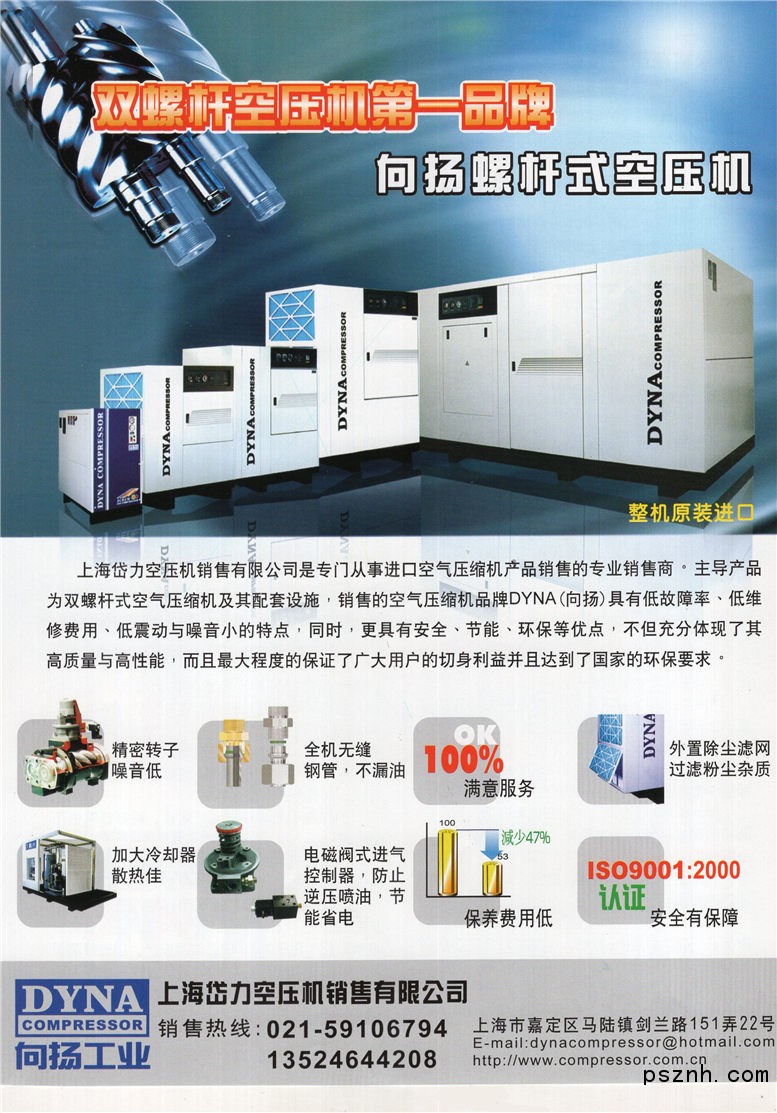 公司的前身上海向揚空壓機有限公司自1958年致力研發螺桿式空壓機以來,累計長期研究發展實務經驗,無論機器設計、制造品質無一不以實際用戶為研究出發點,不做空洞及無邊際的花俏設計。為了滿足用戶對壓縮空氣的效率和可靠性的追求,我們不斷的改善用戶的壓縮空氣系統,為用戶提供量身定制的一站式壓縮空氣解決方案。