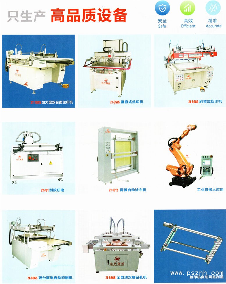目前主營產品:軟板CCD全自動絲印機、硬板CCD全自動絲印機、雙臺面絲印機、半自動絲印機系列、智能收放板機系列、雙軸鉆孔機、網版自動涂布機,智能機器人應用等自動化設備, 電壓機及靜電涂布機耗材。
