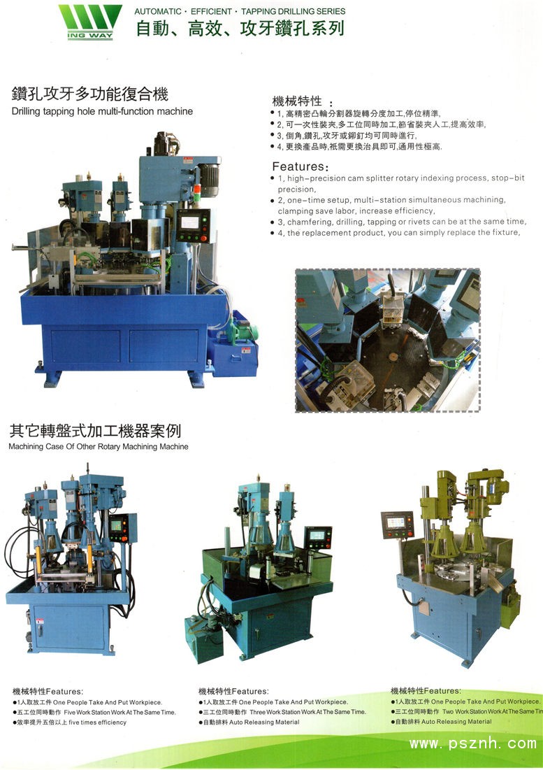 公司集研發、生產、銷售、服務于一體,公司在五金行業的自動化,安全化領域的研發與生產積累了豐富經驗,所研發生產的全自動攻牙機以及非標攻牙鉆孔機(自動鉆孔攻牙機系列產品)已廣泛用于五金生產加工,改變以往人工操作繁鎖,速度慢,質量差,效率低的落后生產方式,在大幅度提成生產產能,降低企業成本方面作出了貢獻。