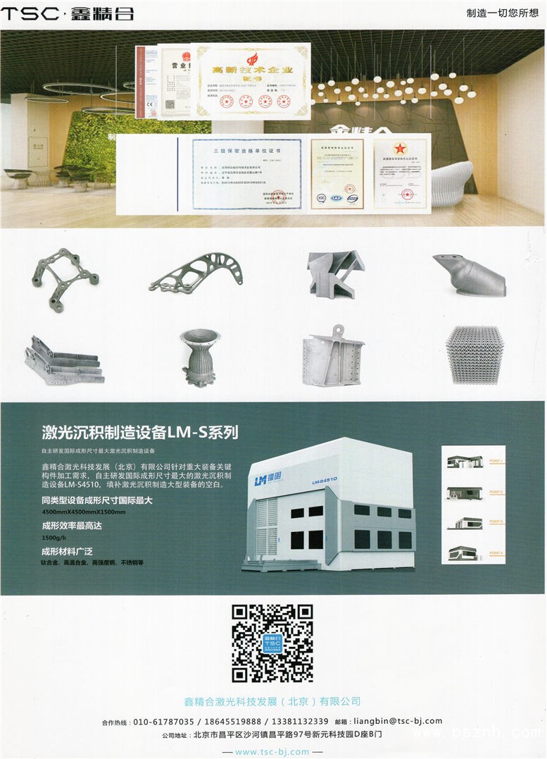 鑫精合激光科技發展(北京)有限公司(以下簡稱“鑫精合”)以增材制造、特種連接、金屬鈑金成型、復合材料加工、復雜機械加工、精密裝配等先進制造工藝為依托,面向航天、航空、航海、核電等高端制造領域,從事產品設計與優化、原材料制備、結構分總體制造與修復、增材制造設備生產、軟件定制開發、技術咨詢與服務的國家級高新技術企業;是中國領先的金屬增/減材制造技術全套解決方案提供商。2017年底經過公司資源整合,正式成立精合集團,集團總部位于北京,在天津、重慶、沈陽、西安、濰坊、上海設有分子公司。