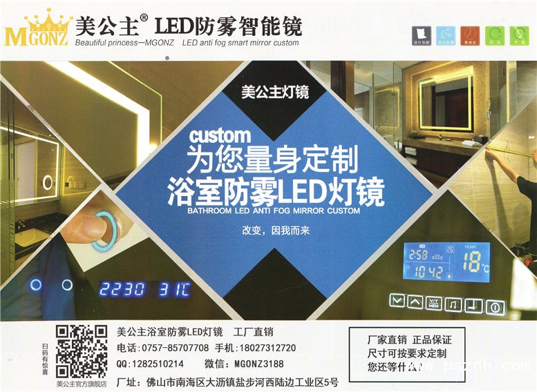 佛山市美視界智能科技有限公司是一家集生產,銷售,安裝于一體的綜合性企業,我們專業生產:LED浴室鏡、智能電視鏡、防霧浴室鏡、藍牙音樂燈鏡,不銹鋼燈鏡,酒店定制衛浴鏡,智能鏡柜等,可按客戶圖紙要求定制。我們的名字:美公主我們的產品主要出口世界各地,為很多豪華酒店、賓館,政府單位、商務辦公樓、百貨廣場、機場、家裝等服務過 我們不斷探索和創新,以“優越的質量,服務至上”的宗旨,以優良的產品贏得廣大客戶的信任與支持。