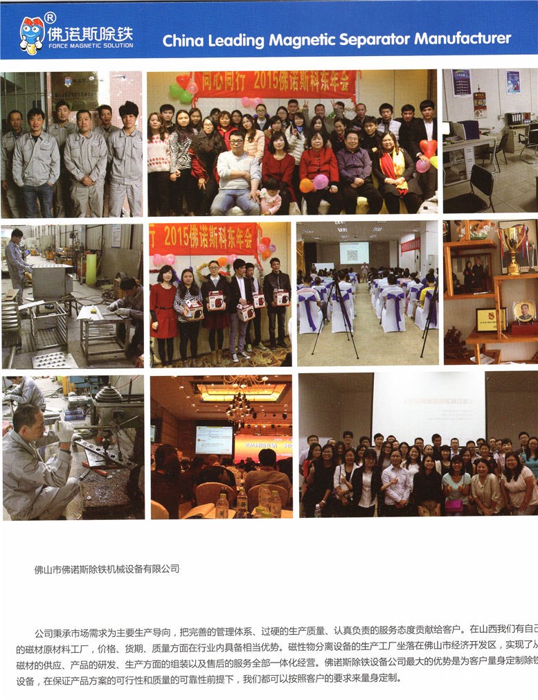 公司秉承市場需求為主要生產導向,把完善的管理體系、過硬的生產質量、認真負責的服務態度貢獻給客戶。在山西我們有自己的磁材原材料工廠,價格、貨期、質量方面在行業內具備相當優勢。磁性物分離設備的生產工廠坐落在佛山市經濟開發區,實現了從磁材的供應、產品的研發、生產方面的組裝以及售后的服務全部一體化經營。佛諾斯除鐵設備公司最大的優勢是為客戶量身定制除鐵設備,在保證產品方案的可行性和質量的可靠性前提下,我們都可以按照客戶的要求來量身定制。