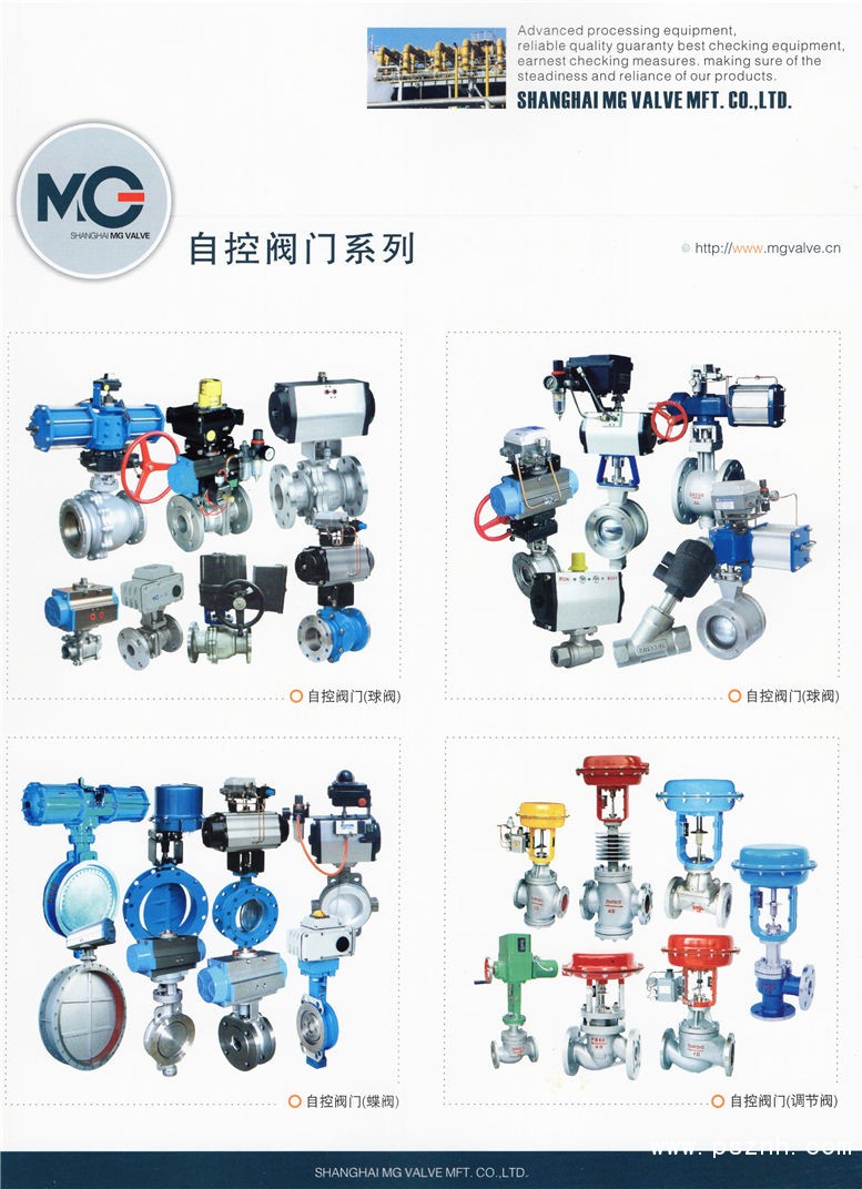 公司生產的”MG”系列產品:API 、 ANSI 、 BS 、 DIN 、 NF 、 JIS 、 GB 等標準的球閥,蝶閥,閘閥,截止閥,止回閥,隔膜閥,水利控制閥,等閥門,通徑:1/4“-80”(6-2000mm),壓力等級150Lb-2500Lb(0.1Mpa-42Mpa),工作溫度-196℃-680℃,閥門主體材料采用鑄鐵、球鐵、碳鋼、合金鋼、不銹鋼、銅等,另可根據用戶特殊需求冶煉和制造,氣動執行器,電動執行器,氣動元件,控制器等自動化產品。目前廣泛應用于化工、精細化工、醫藥衛生、食品飲料、釀造、石油存儲、油品提煉、電廠、水處理、冶金、氣體處理、礦場等行業。