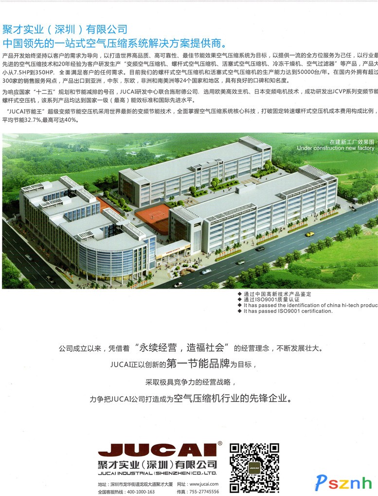聚才實業(深圳)有限公司 JUCAI節能王 螺桿式空壓機 活塞式空壓機 冷凍式干燥機