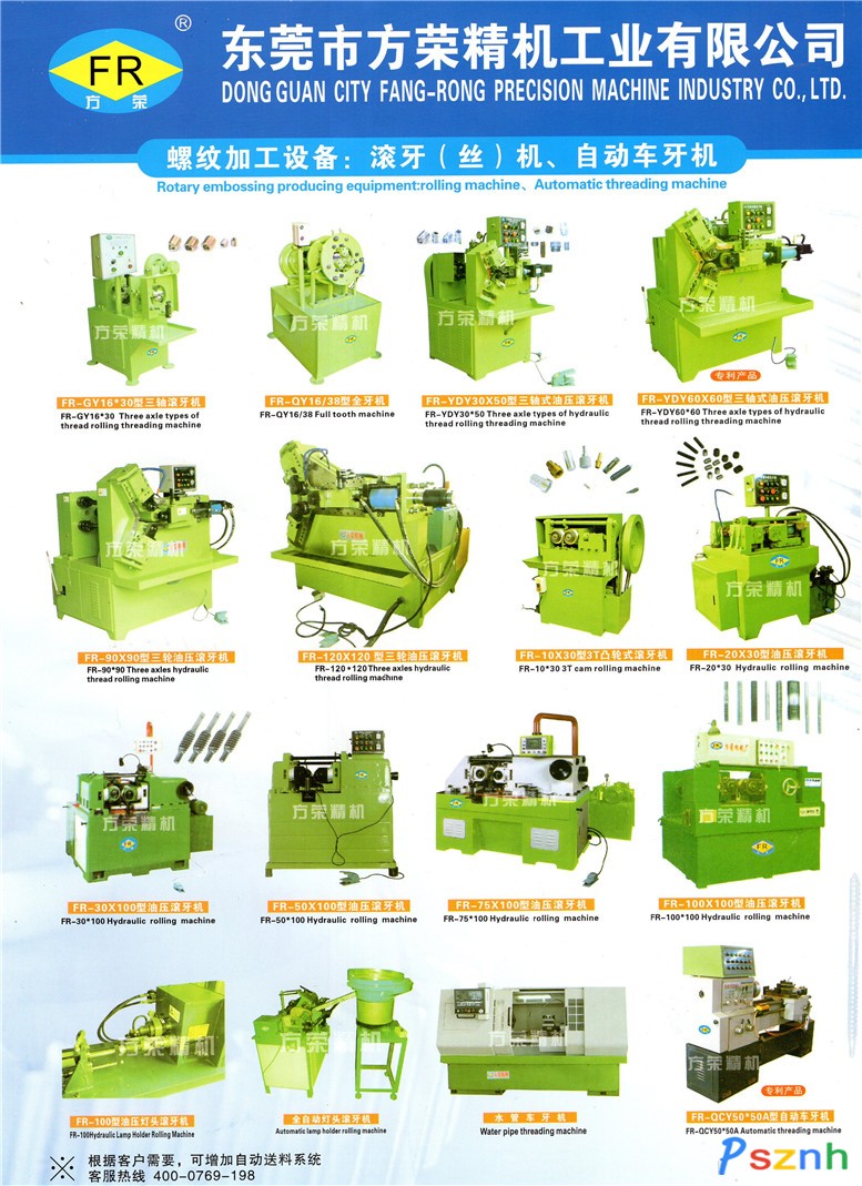 3、滾牙機(滾絲機)系列:三輪滾牙機、二輪滾牙機、燈頭滾牙機、車牙機;系列設備具有適用范圍廣,其工作能在冷態下對工件進行螺紋、直紋、斜紋網紋滾壓;直齒、斜齒及斜花鍵齒輪的滾軋;校直、滾斷、滾光和各種成形滾壓。