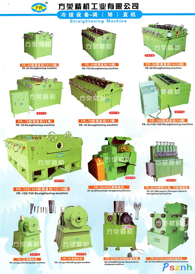 2、精密冷拔機(拉拔機)系列:鏈式拉拔機、油壓拉拔機、履帶式拉拔機、全自動拉拔機、連續拉拔機、銅鋁管內螺紋機、盤拉機、拉光機、拉花機、銅排拉拔機、自動定尺切斷拉拔機、拉絲機及配套滾珠式縮頭機、油壓六??s頭機、軋尖機等;