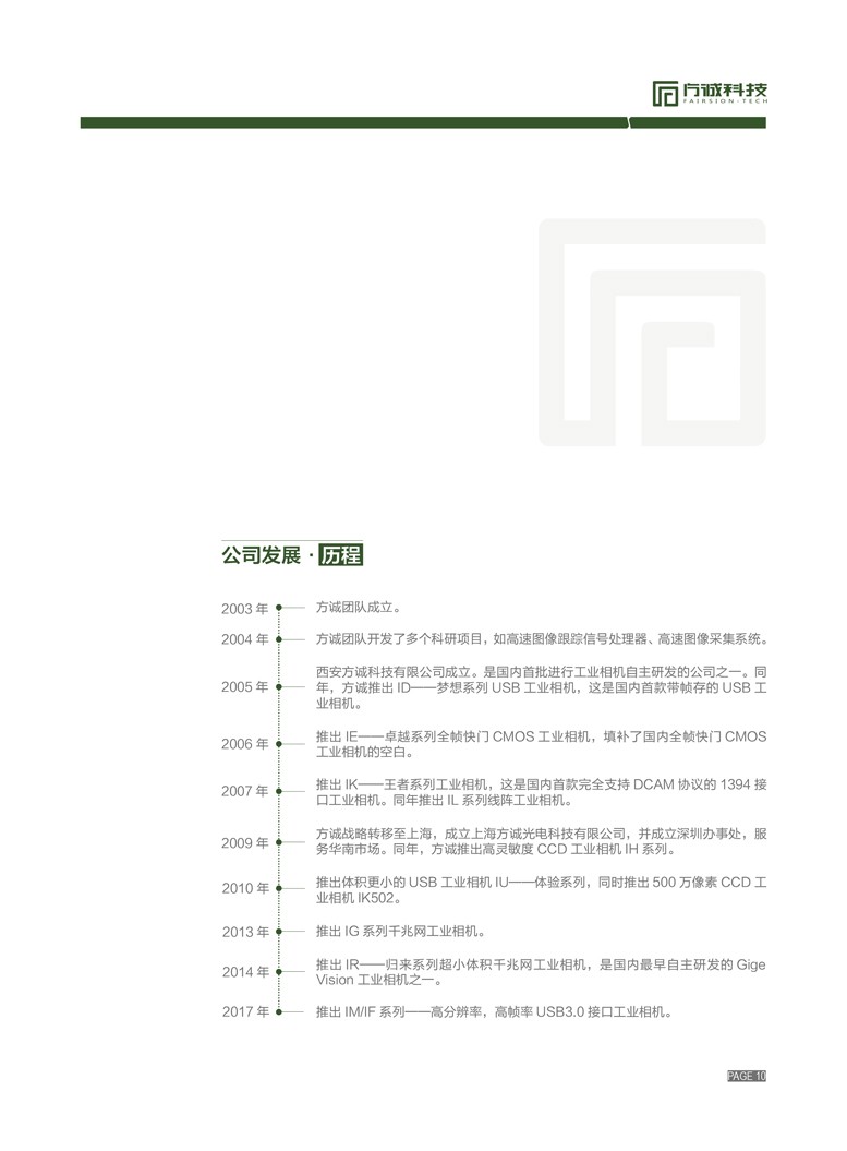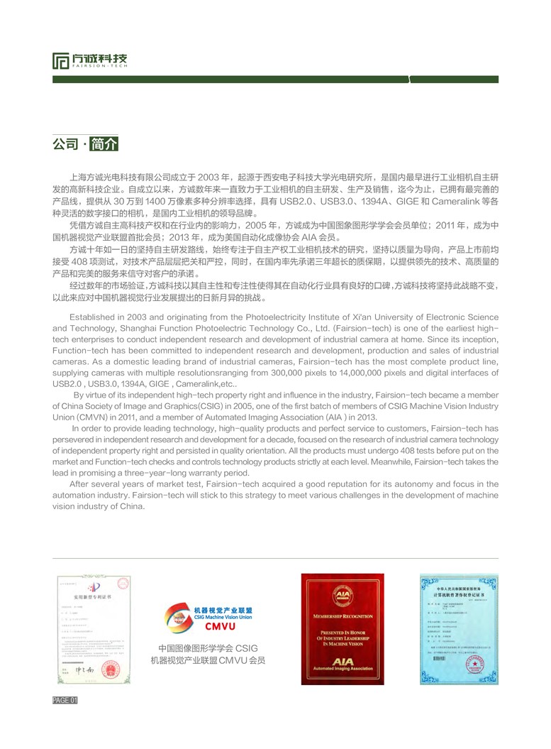 方誠十年如一日的堅持自主研發路線,始終專注于自主產權工業相機技術的研究,堅持以質量為導向,產品上市前均接受408項測試,對技術產品層層把關和嚴控,同時,在國內率先承諾三年超長的質保期,以提供領先的技術、高質量的產品和完美的服務來信守對客戶的承諾。