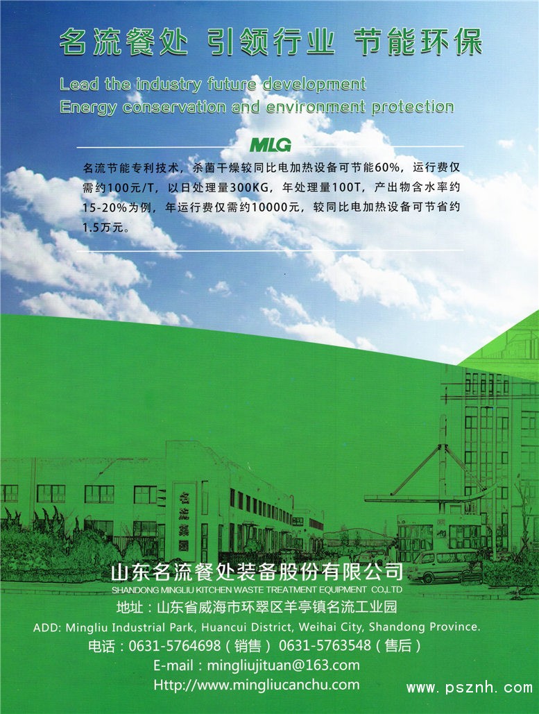 山東名流餐處裝備股份有限公司(原名山東華綠餐處科技股份有限公司)為名流集團下屬子公司,專業從事餐廚棄物處理設備的研發、試制、生產、銷售和運營。公司注冊資本5000萬元,職工人數193人,擁有由韓國原科學會會長、原子力研究所、GAIA研究所所長韓弼淳博士帶隊的高素質研發團隊20余人。建有環保設備研發中心、菌粉研發中心、微生物實驗室。