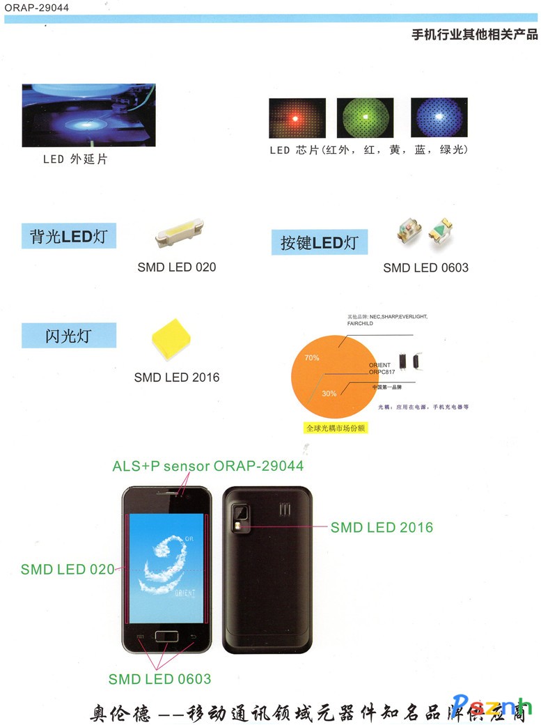 深圳市奧倫德科技股份有限公司 ,創立于1998年,是目前大陸地區研發制造LED芯片歷史最悠久,產品系列最齊全的國家級高新技術企業。深圳市奧倫德科技有限公司旗下包括深圳市奧倫德光電有限公司,江門奧倫德光電有限公司和深圳市奧倫德元器件有限公司三個公司,產業鏈涵蓋LED外延片、LED芯片、封裝及光電開關,傳感器等各類應用產品。目前,我司生產的0603按鍵燈,020背光燈,2016閃光燈以及光耦ORPC-817廣泛應該于手機方案商和手機生產商。光感與接近傳感器是奧倫德與國際知名半導體廠商美國Intersil公司戰略合作,最新成功引進大陸量產的產品之一。光感與接近傳感器采用了性能優越的Intersil IC,國際先進封裝設備、物料,以及技術領先的模壓工藝。并且配置了專業的FAE技術團隊,品質穩定,質量可靠。