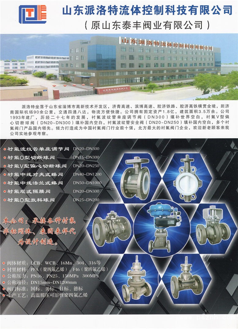 本公司1993年3月7日建廠,歷經二十年余年的發展,已從初始采用國內外先進技術,走向了自主研發和智能創新的可持續發展軌道上。并為國內中泰化學、杭州電化、安邦電化、天原化工、魯西化工、魯北化工、云南鹽化、昊邦化學、海納化工、理文化工、東南電化、北園化工、東岳化工、江蘇九九久科技、永祥化工、大連鹽化、新疆特變電工、宜昌南玻多晶硅、四川瑞能硅業、等500余家氯堿化工、有機硅、多晶硅、氟硅海綿鈦及氯下游產品企業常年提供擁有自主知識產權和高新技術含量的液氯安全閥、氯氣專用閥、氯氣緊急切斷閥、氯氣調節閥、氣動襯氟單座調節閥、特殊閥座氣動偏心球閥、氣動襯氟蝶閥、氣動襯氟O型切斷閥、高耐磨亞微米陶瓷閥等多種調節閥系列產品,并擁有光氣波紋管專用閥、光氣專用切斷閥、液氨專用閥、液氨專用切斷閥、液氨專用閥、氟利昂專用閥、氟利昂專用安全閥,鹽酸襯氟閥門、氯堿控制閥、純堿專用閥、貫流式止回閥、多晶硅專用閥、耐磨陶瓷盤閥、耐磨陶瓷硅閥等三十余項專利技術。其中全襯氟(塑)閥門系列、襯膠/襯塑閥門系列、搪瓷閥門系列、氣動閥門系列、襯氟閥門系列、襯氟偏心球閥系列、耐磨陶瓷閥系列等在國內享有較高知名度,多個系列產品被評為閥門行業十佳產品、暢銷品牌、重點保護品牌、重點推廣產品;中國襯氟閥門行業十強。公司多個系列產品贏得了用戶的信任、同行的認可、市場的份額,并成為中國氯氣閥門、襯氟閥門、高危介質特種閥業的可靠品牌。