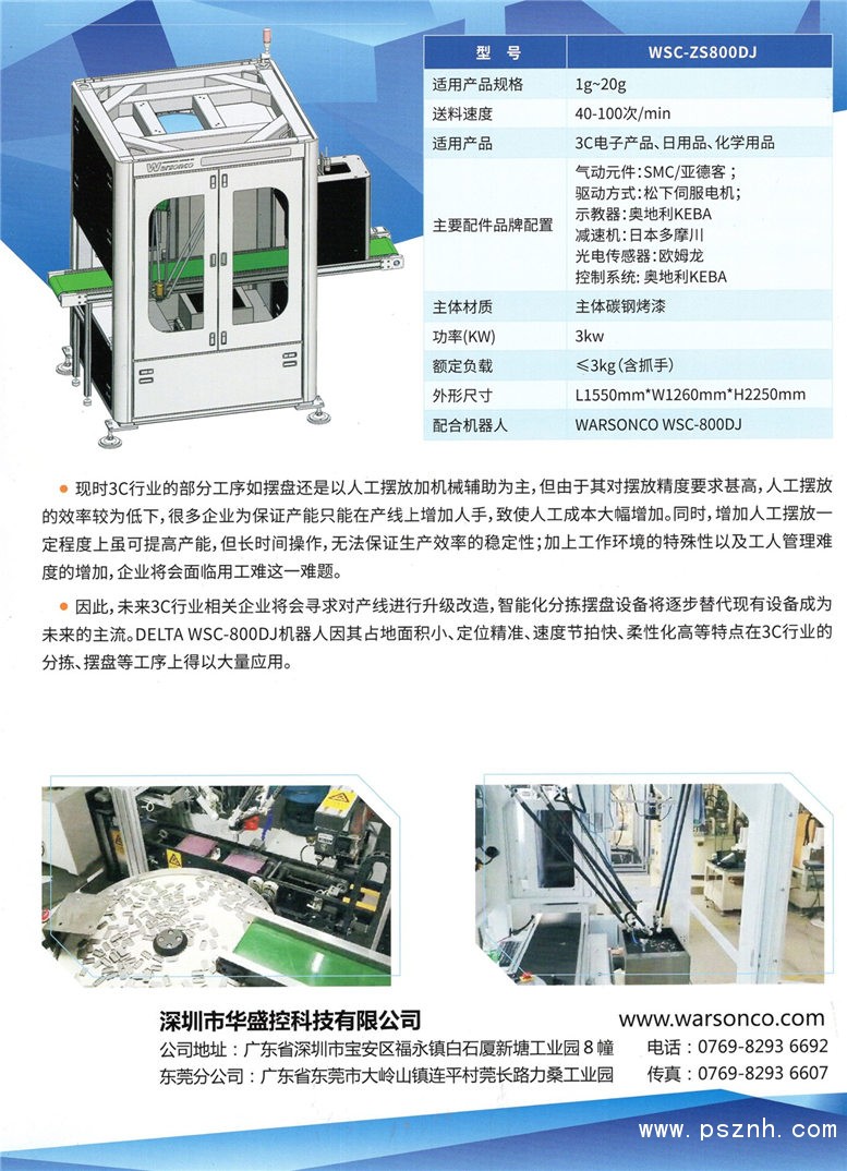 深圳市華盛控科技有限公司 工業DELTA機器人 吊裝機器人 SCARA機器人