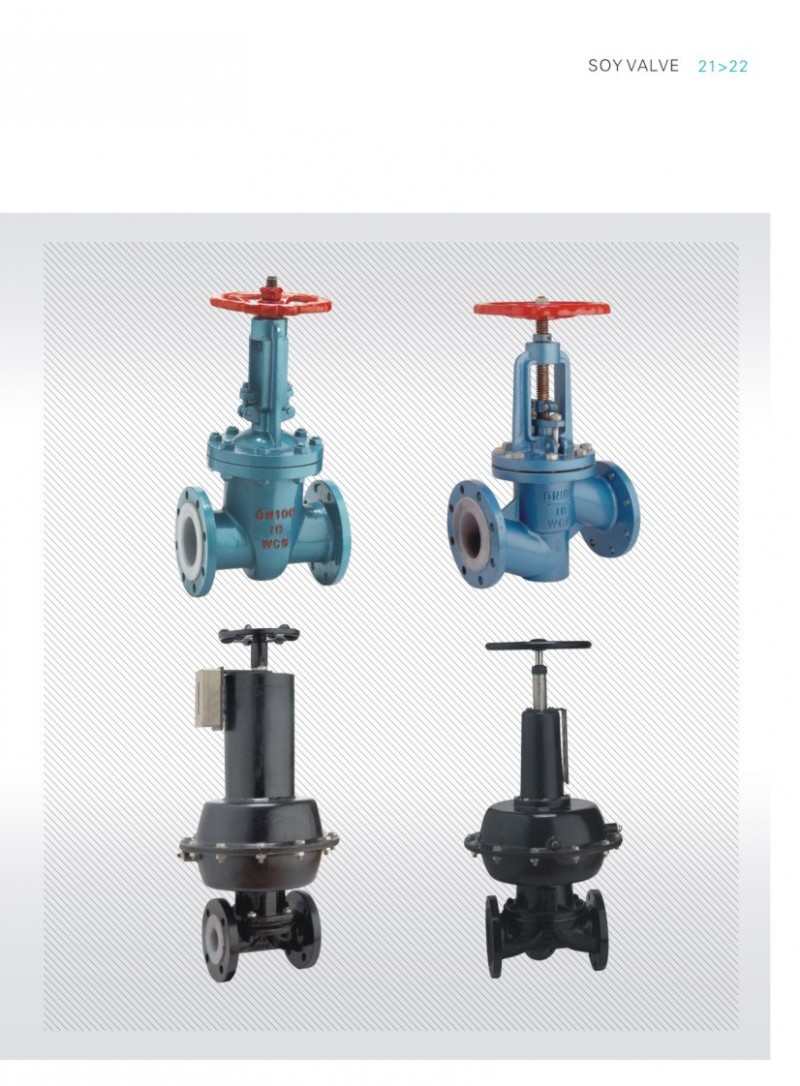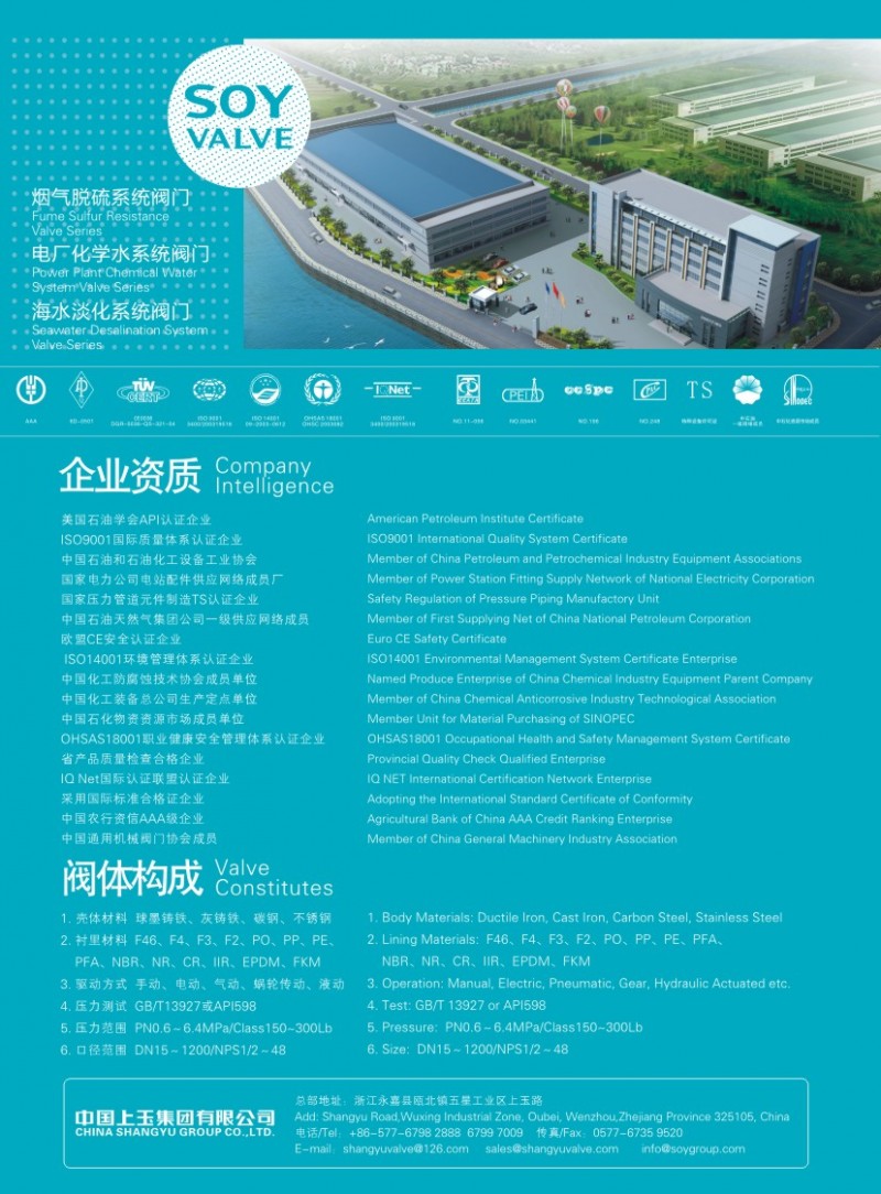 襯膠閥門系列、襯氟閥門系列、彈性座封閘閥系列和給排水供暖系列等,主要生產標準有GB、BS、API、ANSI、ASME、JIS、ISO、DIN和非標等。主導產品耐腐蝕閥門技術在國內處于領先水平,其中襯氟襯膠系列閥門全國市場占有率超過50%。上玉集團有限公司是浙江省較早開發出耐腐蝕閥門的專業閥門企業,多次進行技術攻關,頻頻打破襯膠襯氟、煙氣脫硫等技術依賴進口的格局。公司自主研發的產品填補多項國內、行業和省內空白,并取得多項國家專利。公司還成為中國閥門技術標準委員會成員,參與起草制訂多項國家標準。公司產品行銷全國,并出口歐美、中東等地,廣泛應用于石油、化工、電力、冶金、醫藥、鐵路、建筑等各個行業,適用于軍工、核電、環保、城建、消防、水利等各個系統,深受用戶好評和社會信賴。