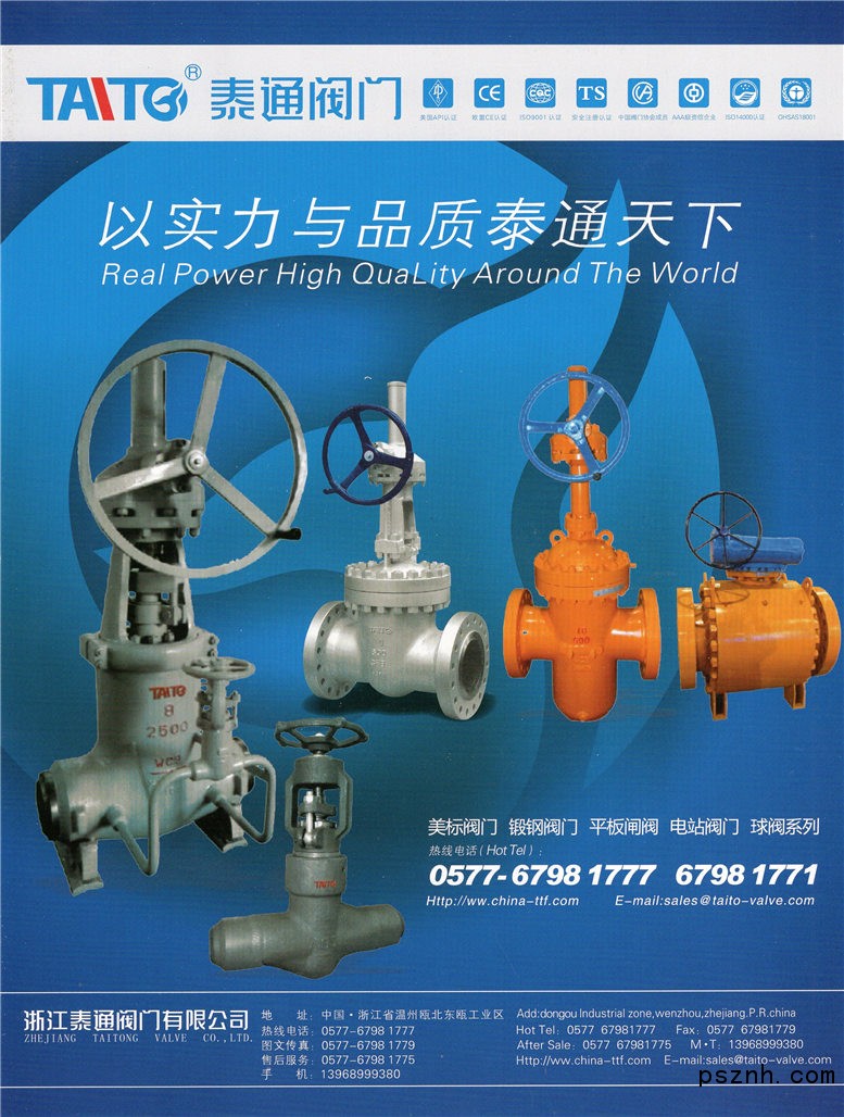 浙江泰通閥門有限公司是中國外向型、集團型閥門加工生產制造企業之一;由泰通集團總投資人民幣2000多萬元在全球聞名的泵閥之鄉——永嘉縣甌北鎮東甌工業區興建現代化的泰通工業園,占地面積25000多平方米,建筑面積達到20000多平方米。公司技術力量雄厚,設備精良,擁有數控車削中心,高效,高精度加工專業機器,現代化探傷設備等各類加工檢測設備200多臺。企業先后通過了IS090001,API,CE及AZ國際認證。