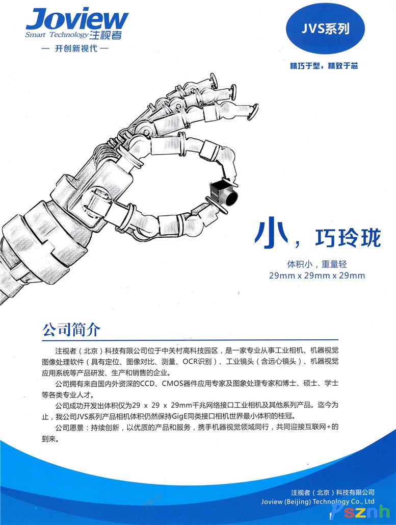 注視者(北京)科技有限公司  位于中關(guān)村高科技園區(qū),是一家專業(yè)從事工業(yè)相機、視覺圖像處理軟件、機器視覺系統(tǒng)等產(chǎn)品研發(fā)和應(yīng)用的企業(yè)。公司擁有來自國內(nèi)外資深的CCD、CMOS器件應(yīng)用專家及圖像處理專家和博士、碩士、學(xué)士等各類專業(yè)人才。公司現(xiàn)成功開發(fā)出體積僅為29x29x29mm千兆網(wǎng)絡(luò)接口的工業(yè)相機等系列產(chǎn)品。
