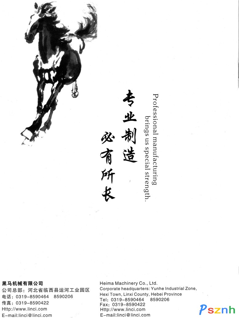 臨西縣黑馬機械有限公司成立于1997年3月,期間曾多次變更企業名稱,2005年5月經全體股東同意企業名稱變更為“臨西縣黑馬機械有限公司”使用至今。