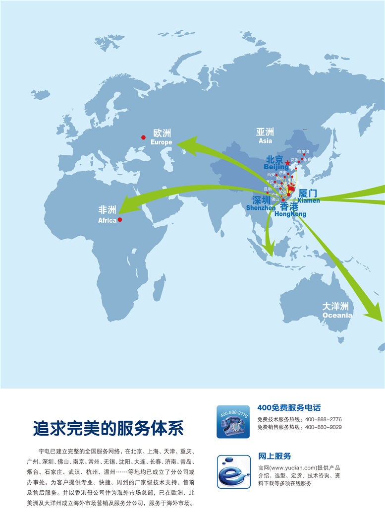如今,宇電溫控器的年銷售量已達到60萬臺,銷售額接近1.5億,產品遠銷北美、歐洲、大洋州、印度、中東、東南亞和香港等多個國家和地區,并獲得客戶好評,宇電已成為國內高端節能環保解決方案的領先供應商。公司所設立分公司和辦事處也遍布全國各地,為客戶提供專業、周到、快捷的各項售前及售后服務,并在香港設立海外市場總部,在歐洲、北美洲及大洋州成立海外市場營銷及服務分公司,服務于海外市場。