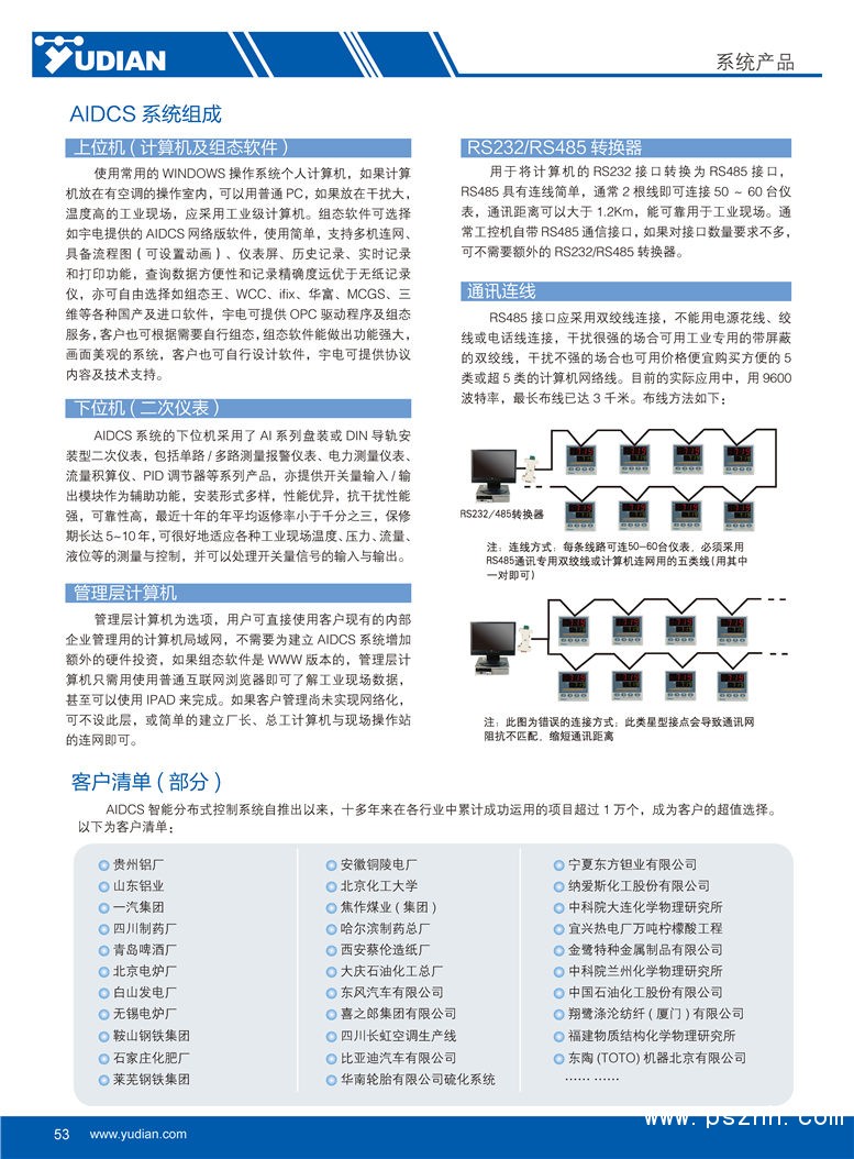 公司專注于高端節能環保解決方案的開發和研究,在工業自動化領域擁有累計超過20年經驗。全球領先推出AI人工智能調節算法、儀表模塊化和平臺化結構、節能環保低溫漂“發燒級”元件設計、380VAC電源防護等技術,有力地推動了自動化行業的發展。AIDCS智能分布式控制系統采用AI系列溫控器,利用RS485或CAN作為通訊總線,結合工控機和組態軟件組成,具備集中管理、危險分散、系統開放、性價比高等優點,深受中小企業青睞,目前累計成功運用的項目已達上萬個,成為客戶的超值選擇。