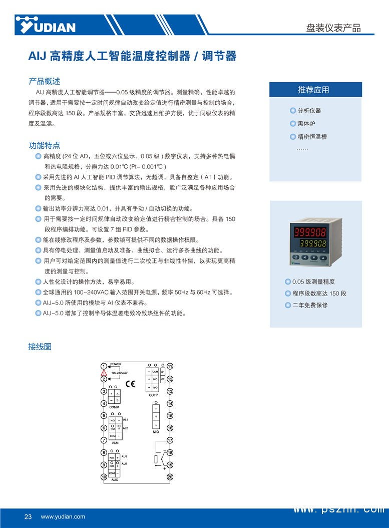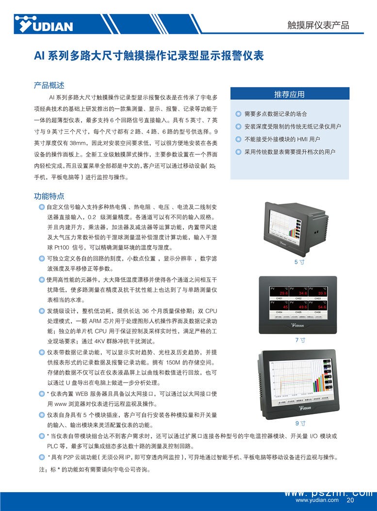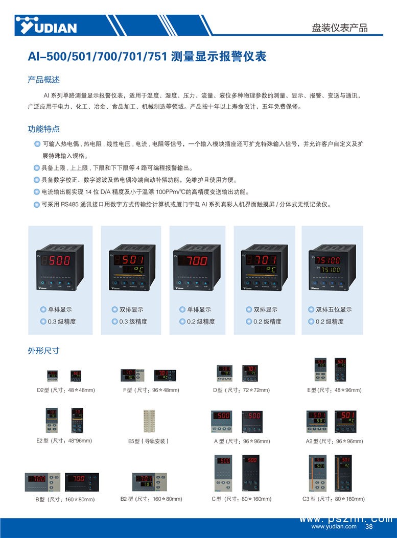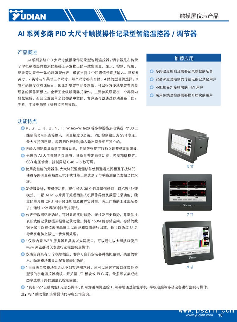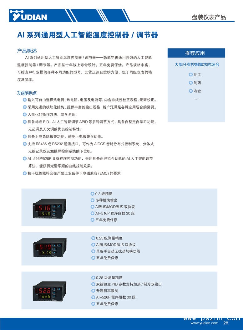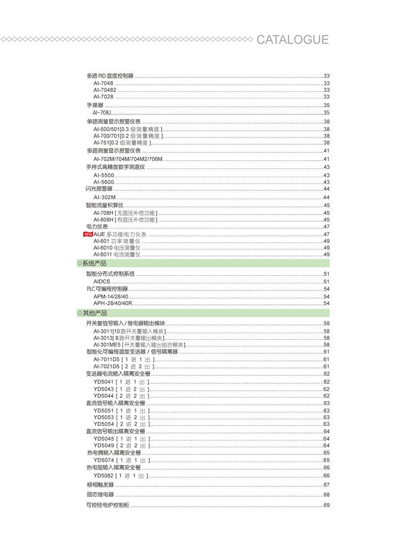 公司產品包括單路及多路測量顯示報警儀、流量積算儀、高精度PID調節器、智能溫控器、導軌安裝儀表、電力測量儀表、手持式精密測溫儀、閃光報警器、可控硅調功觸發器、SSR固態繼電器,分體式無紙記錄儀、觸摸屏控制系統及AIDCS智能分布式控制系統等,廣泛應用于化工、熱電、石化、制藥、冶金、機械、電爐、熱處理、食品、造紙、塑膠、包裝等領域。
